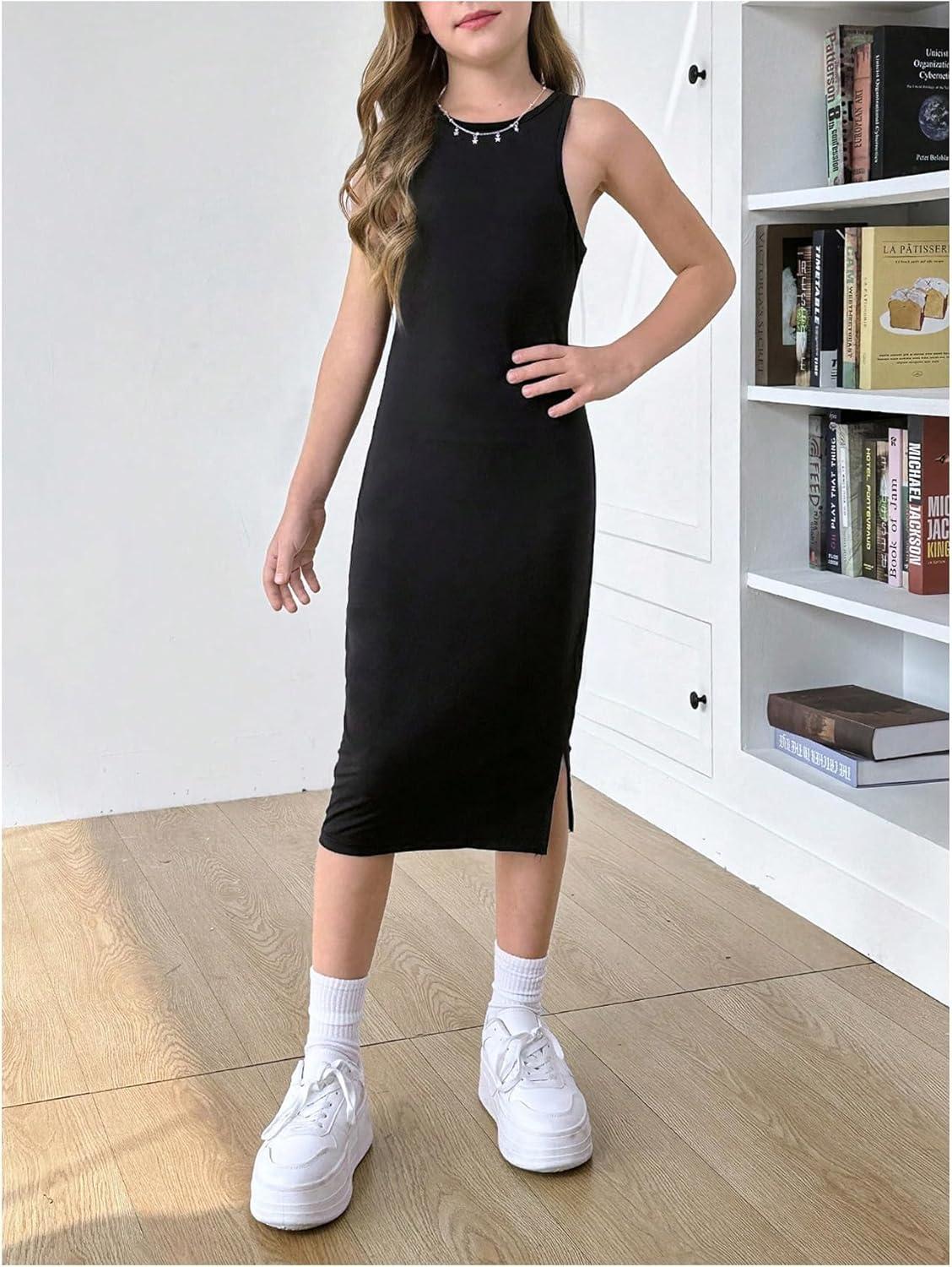 Be the first to review “OYOANGLE Cute Girl’s 2 Piece Outfits Midi Tank Dress Side Split and Hollow Out Long Sleeve Crop Tops Sets(Black)”
