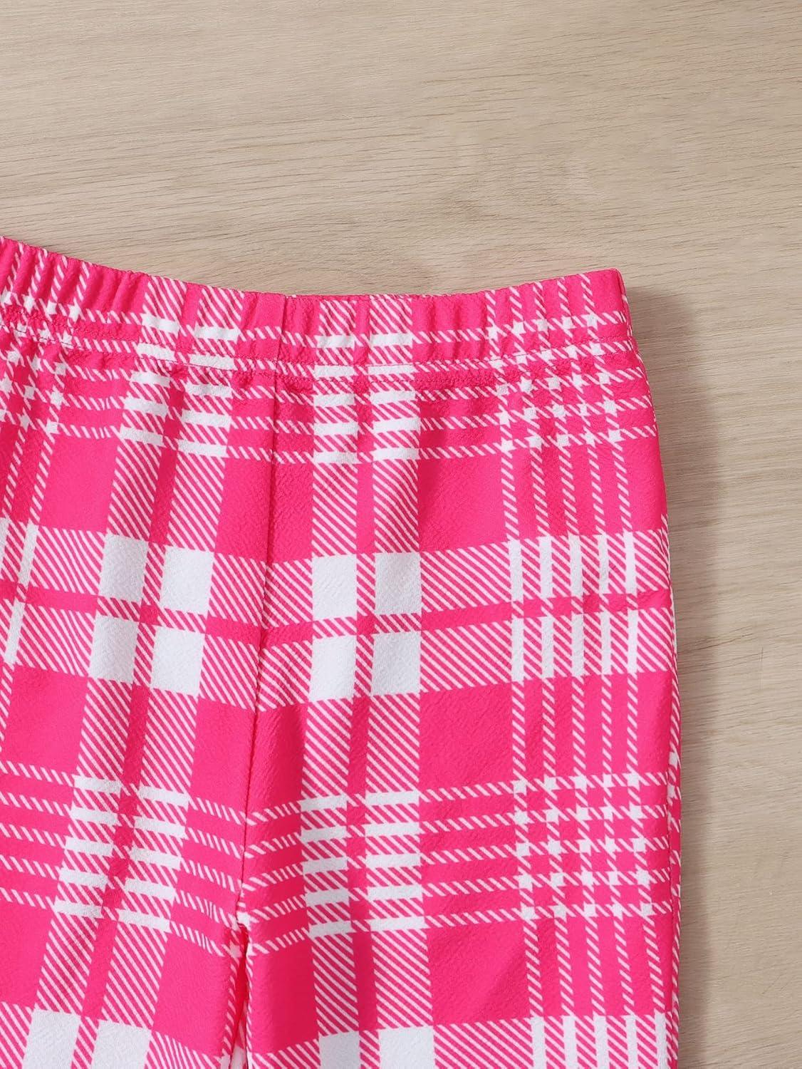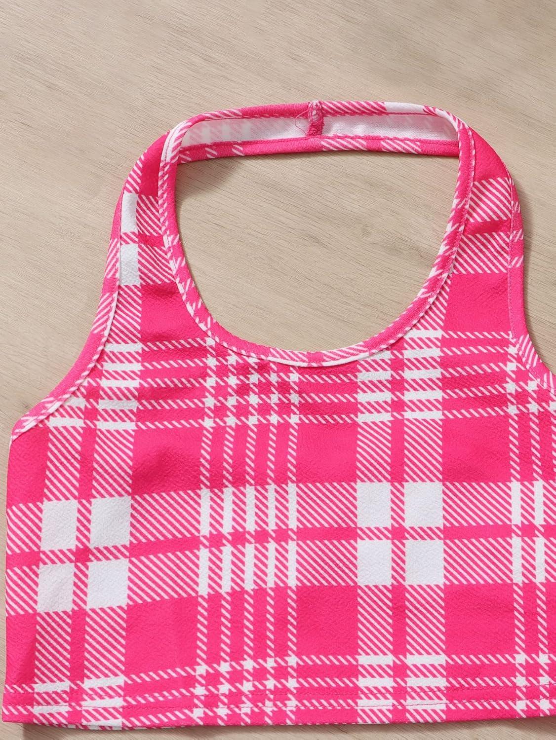 OYOANGLE Girl's 2 Piece Outfits Clothing Sets Halter Crop Top and Flare Leg Pants Set(Pink)