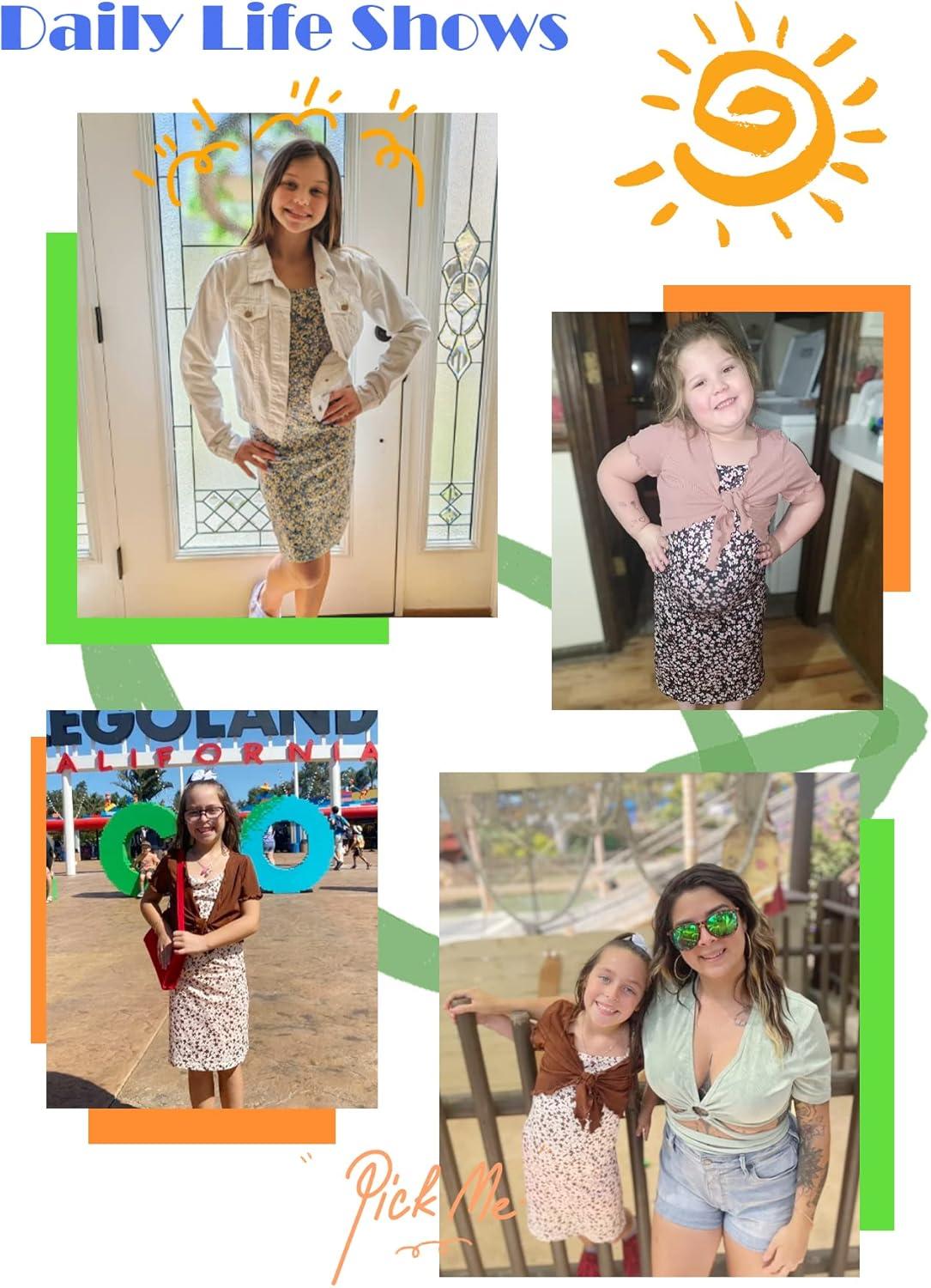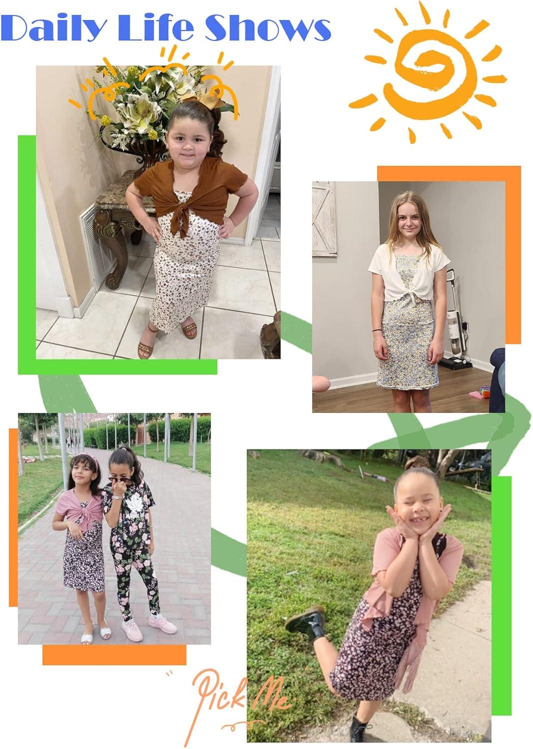 OYOANGLE Girl’s 2 Piece Outfits Floral Print Sleeveless Cute Cami Dresses and Short Sleeve Lettuce Trim Tie Front Top Sets(Dusty Pink)