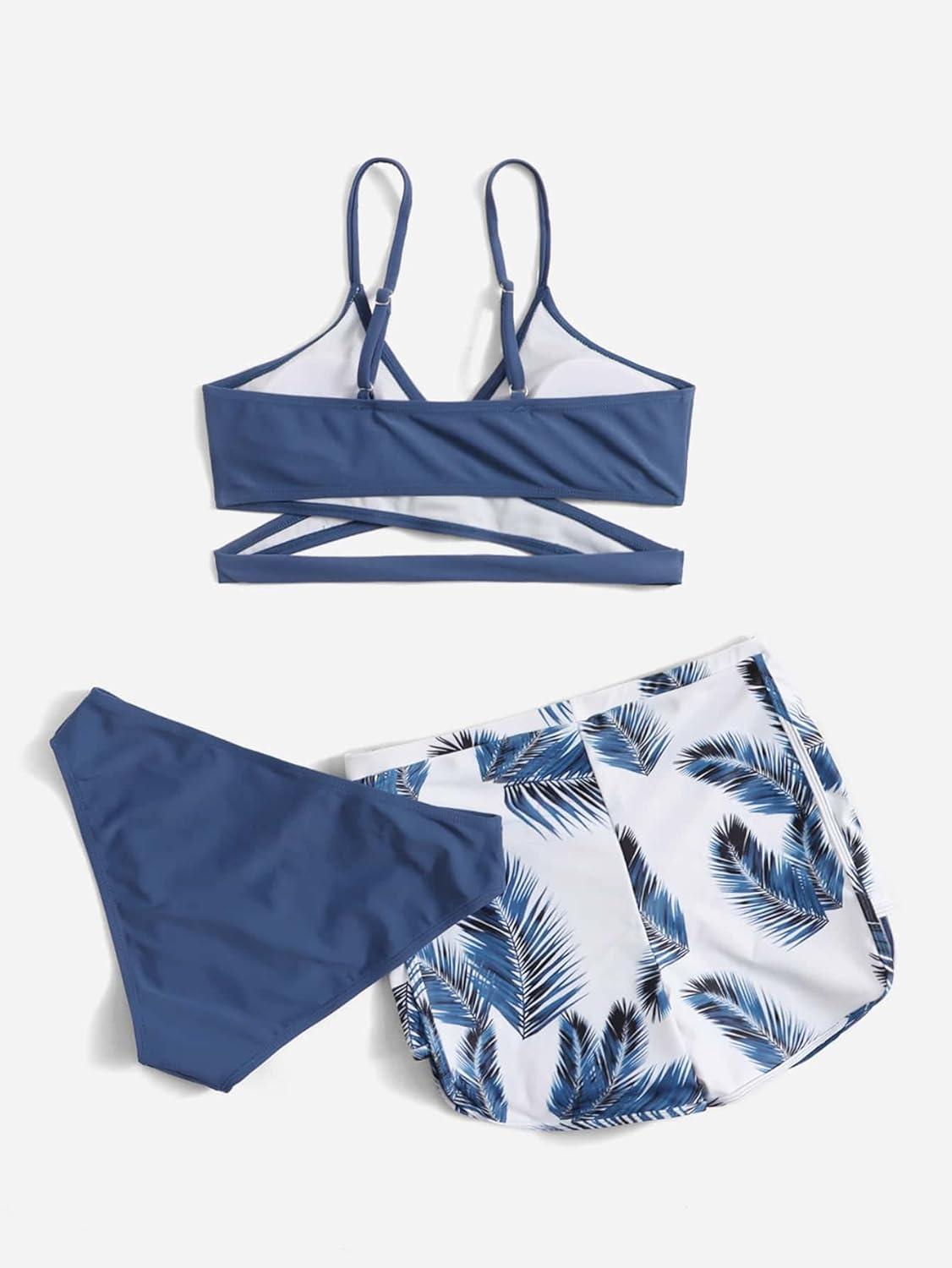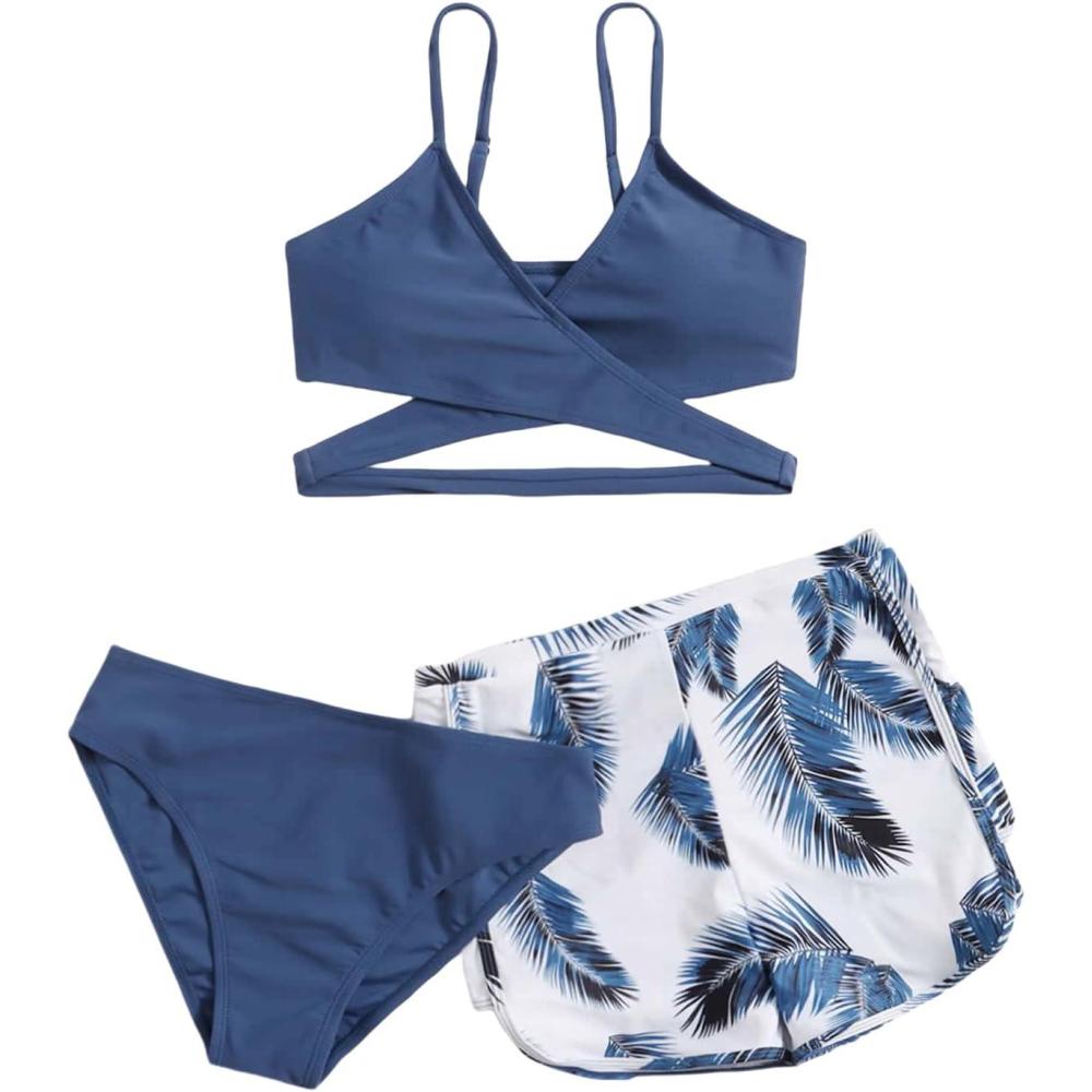 Get up to 50% off on OYOANGLE Girl’s 3 Piece Tropical Print Criss Cross Bikini Set Swimsuit Bathing Suit with Shorts(Teal Blue) styles during our spring sale event.