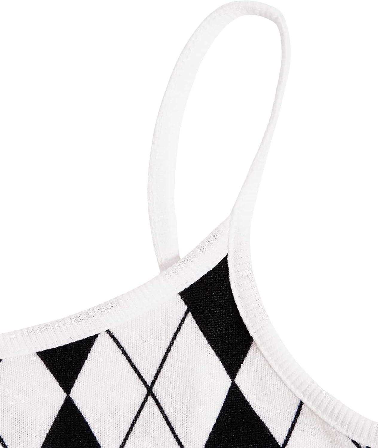 OYOANGLE Girl's Cute 2 Piece Outfits Print Cami Short Dress with Crop Top Tee Set(Black and White)