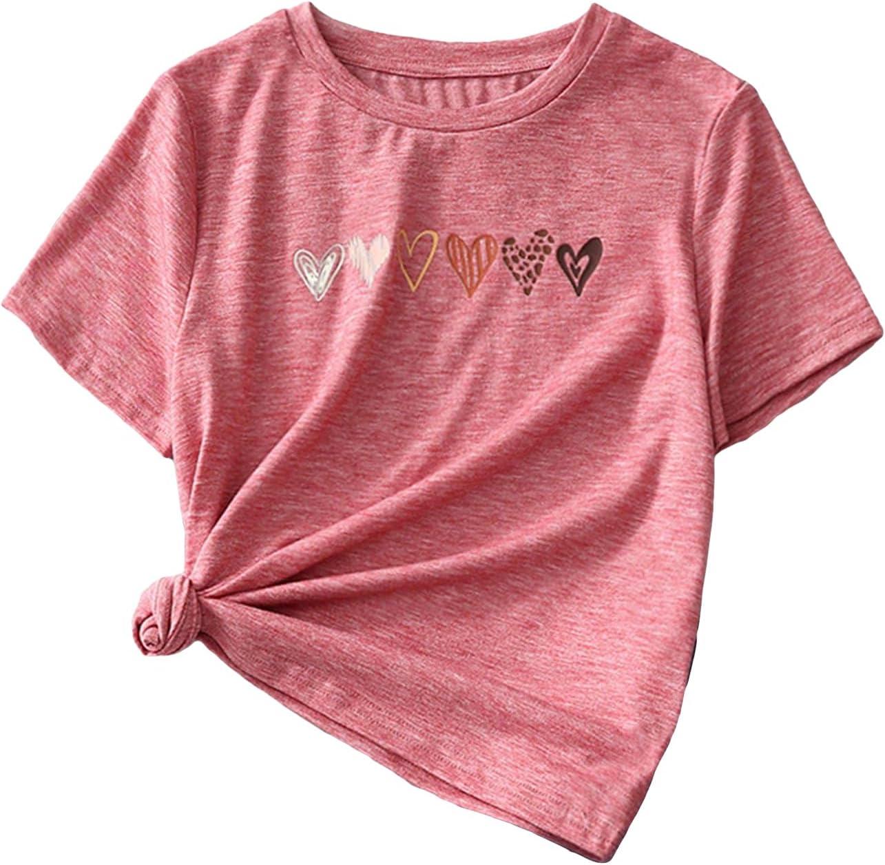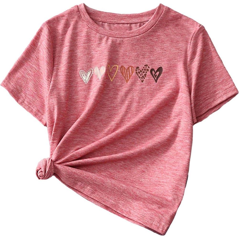 OYOANGLE Girl's Heart Print Short Sleeve Round Neck T-Shirt Funny Graphic Tees Cute Top(Dusty Pink)