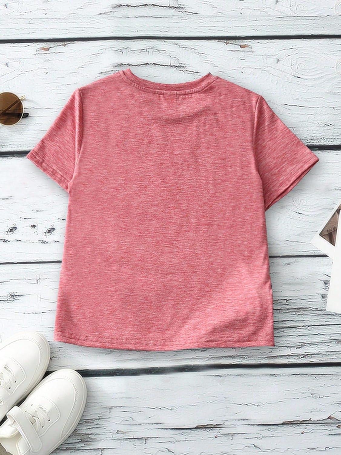 imageOYOANGLE Girls Heart Print Short Sleeve Round Neck TShirt Funny Graphic Tees Cute TopDusty Pink