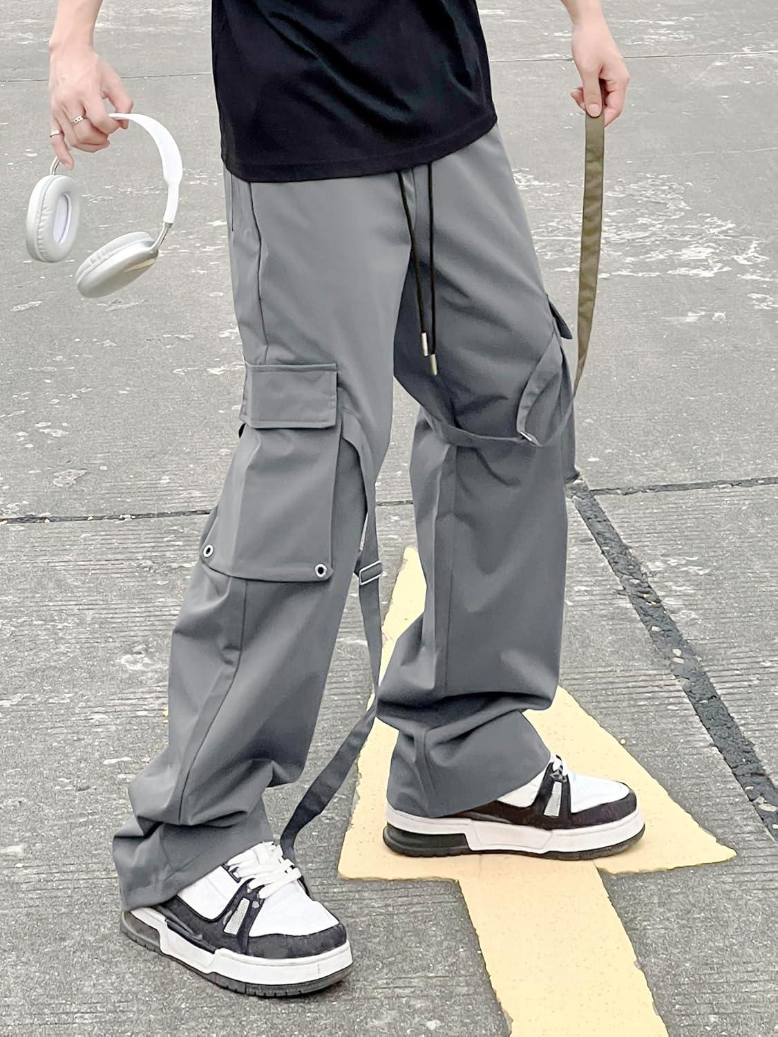 OYOANGLE Men’s Drawstring Elastic Waist Baggy Sweatpants Y2K Loose Wide Leg Long Pants with Pocket(Light White)