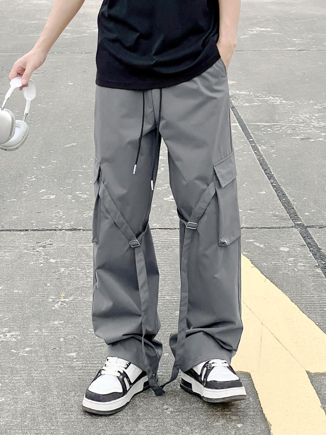 Be the first to review “OYOANGLE Men’s Camo Print Drawstring Waist Straight Wide Leg Flap Pocket Cargo Pants Trousers(Light Grey)”