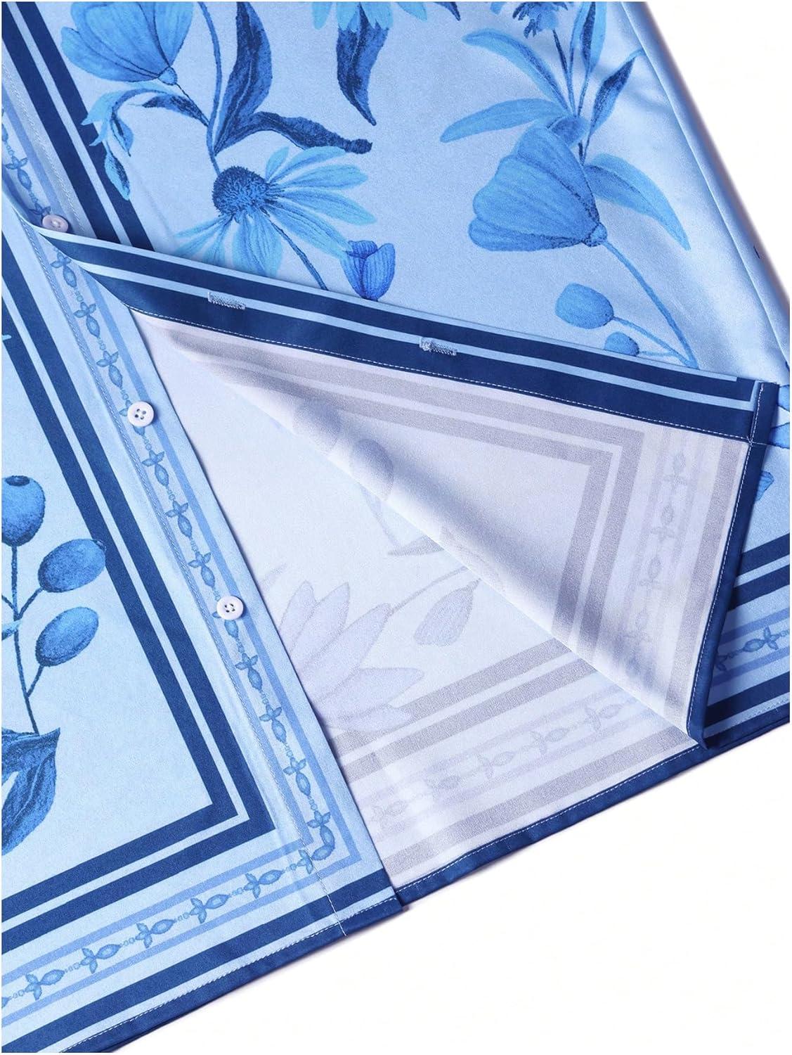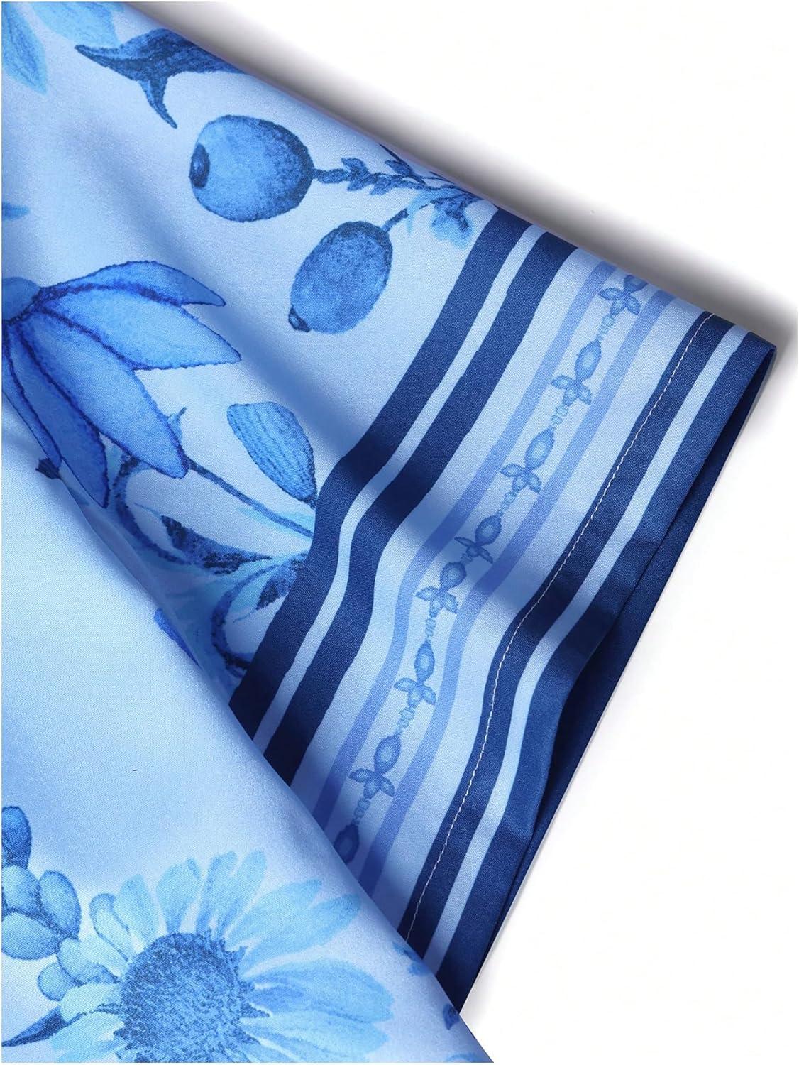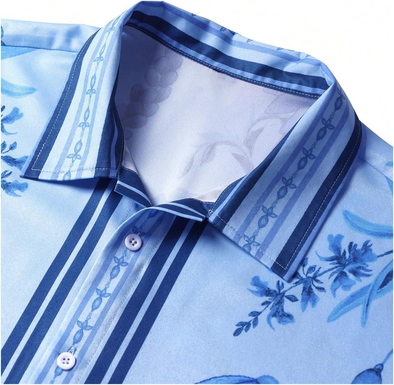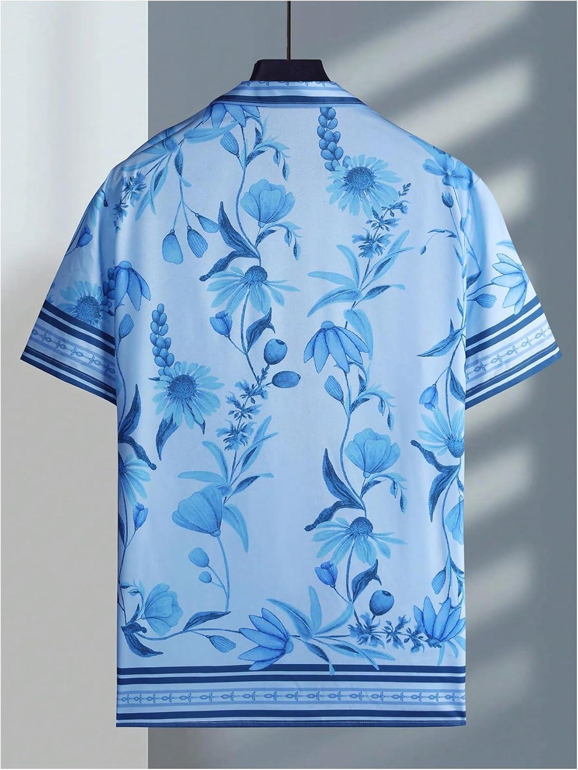 OYOANGLE Men's Short Sleeve Hawaiian Shirts Floral Button Down Shirt Summer Beach Tops(Blue)