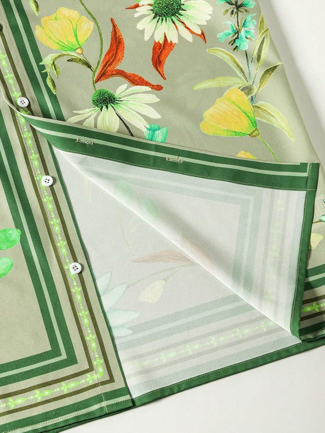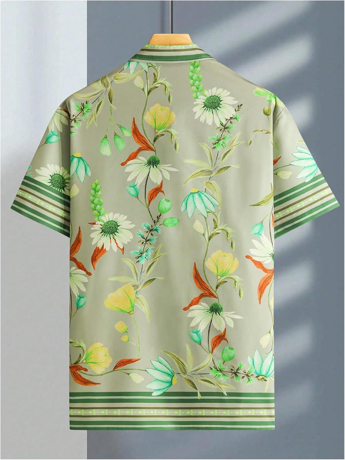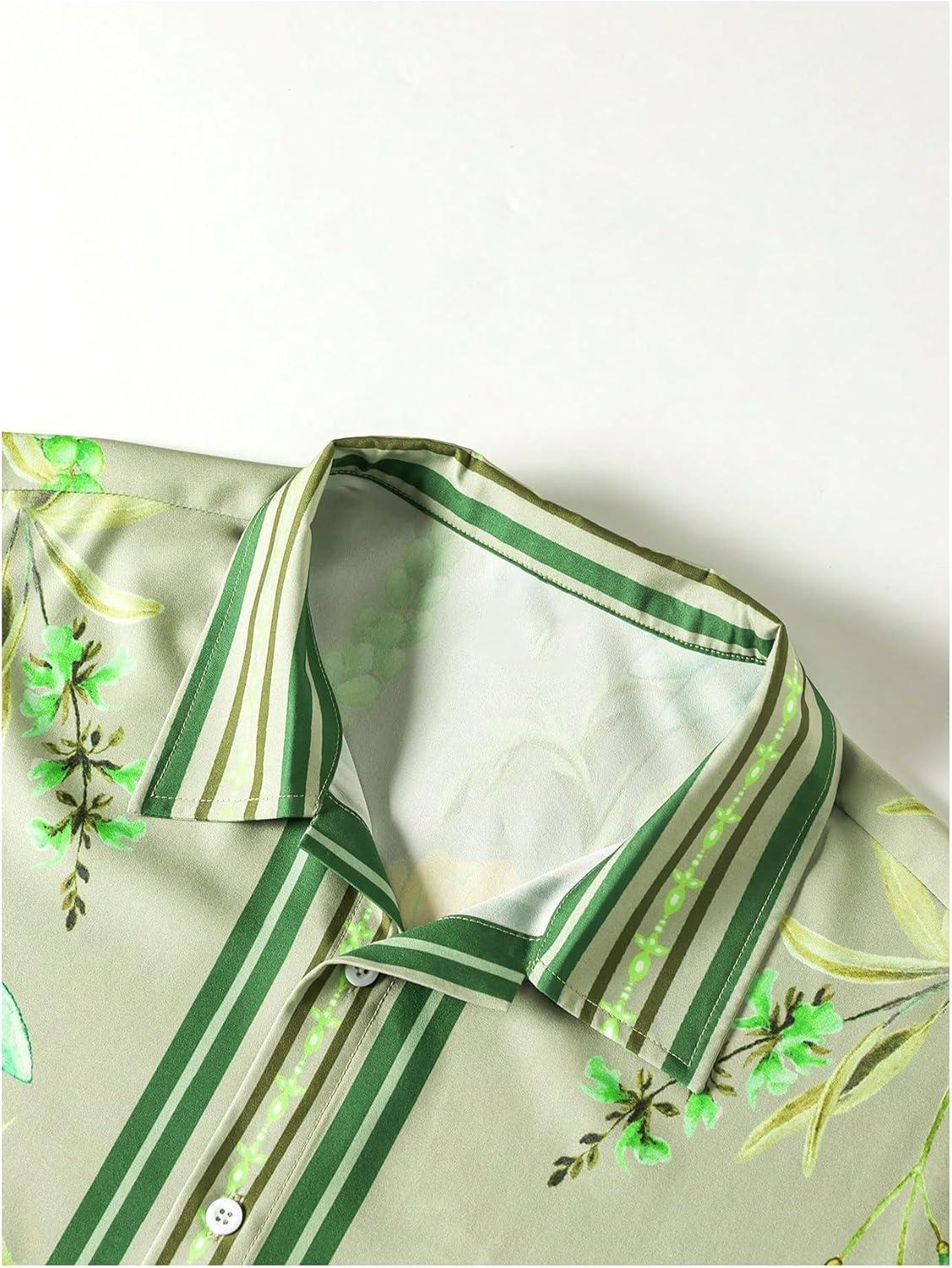 OYOANGLE Men's Short Sleeve Hawaiian Shirts Floral Button Down Shirt Summer Beach Tops(Green)