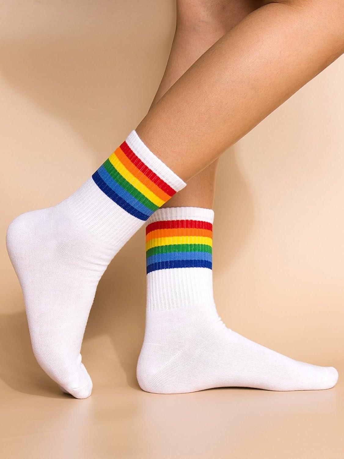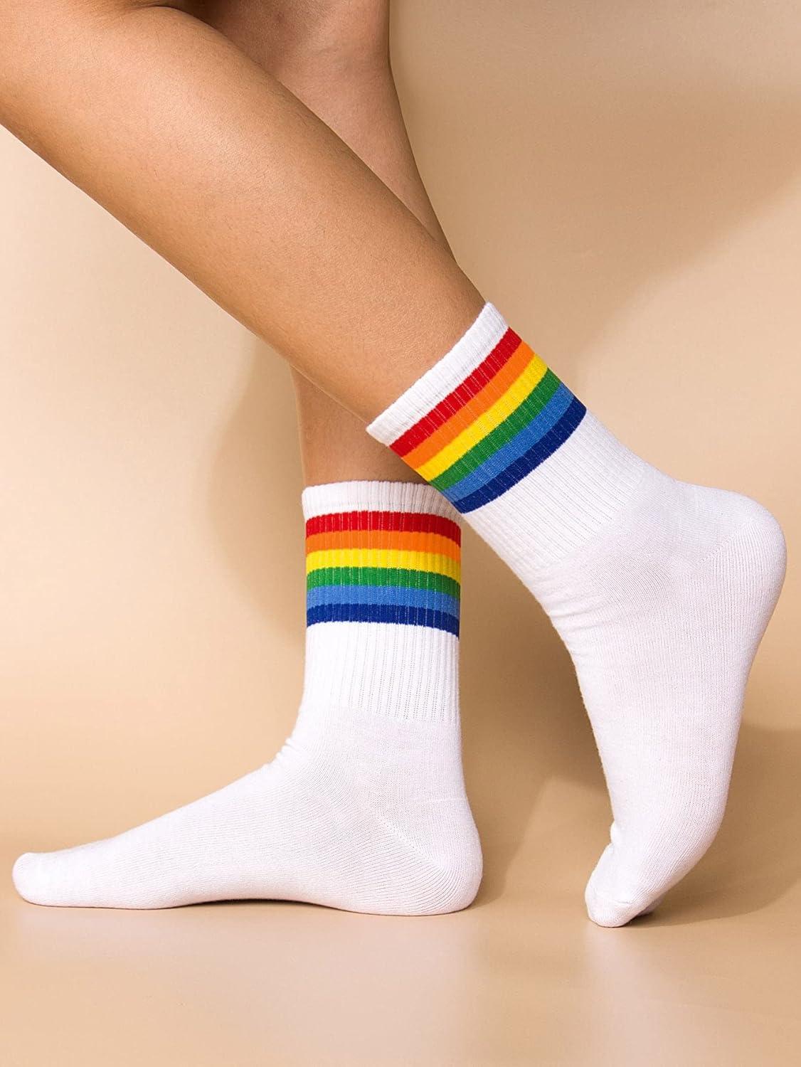 Be the first to review “OYOANGLE Women’s 2 Pairs Striped Trim Casual Crew Socks Simple Mid Calf Socks(Black White)”