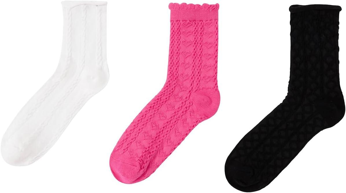 imageOYOANGLE Womens 3 Pairs Cable Knit Casual Crew Socks Stretchy Solid Simple SocksPink White Black