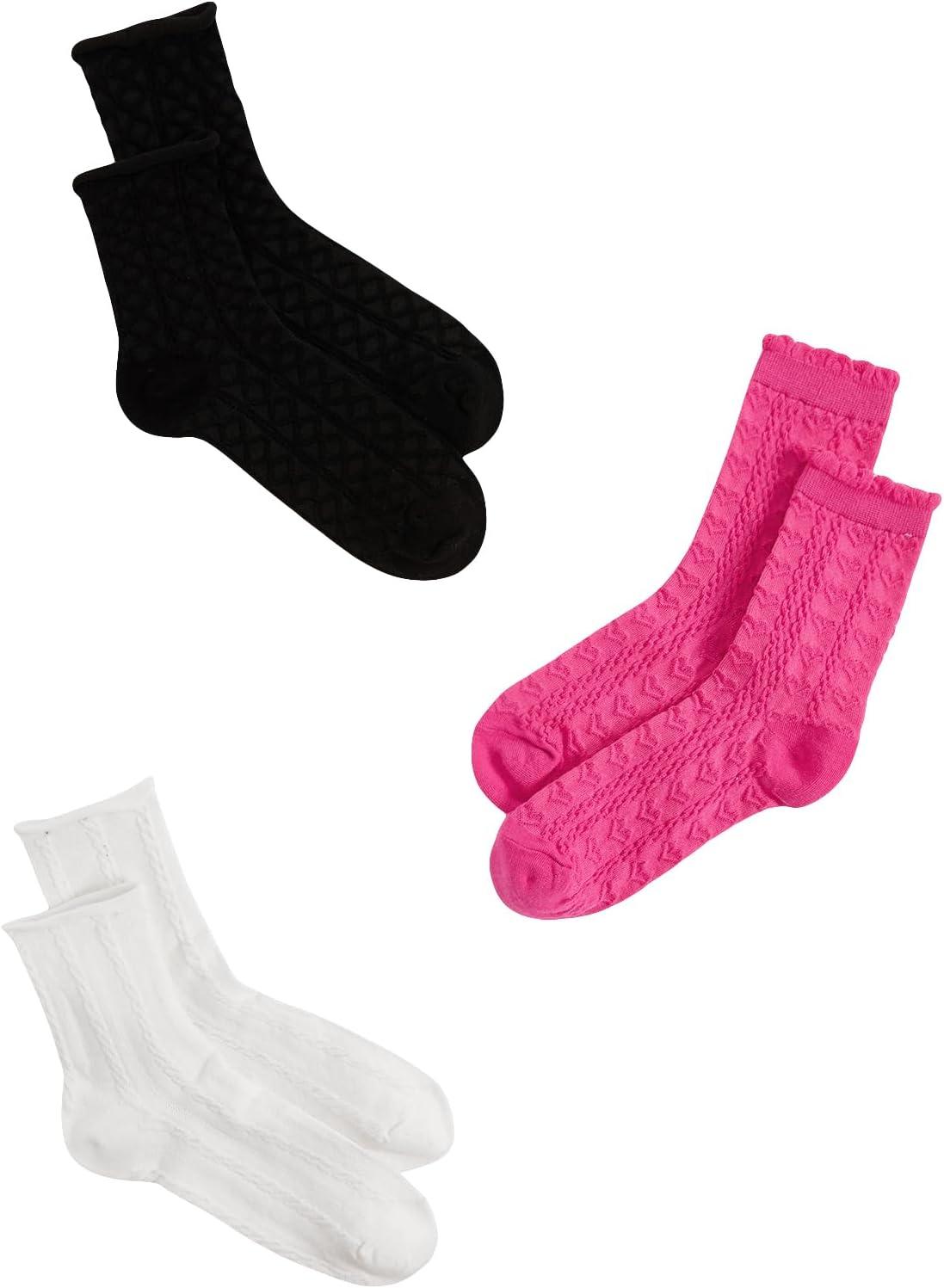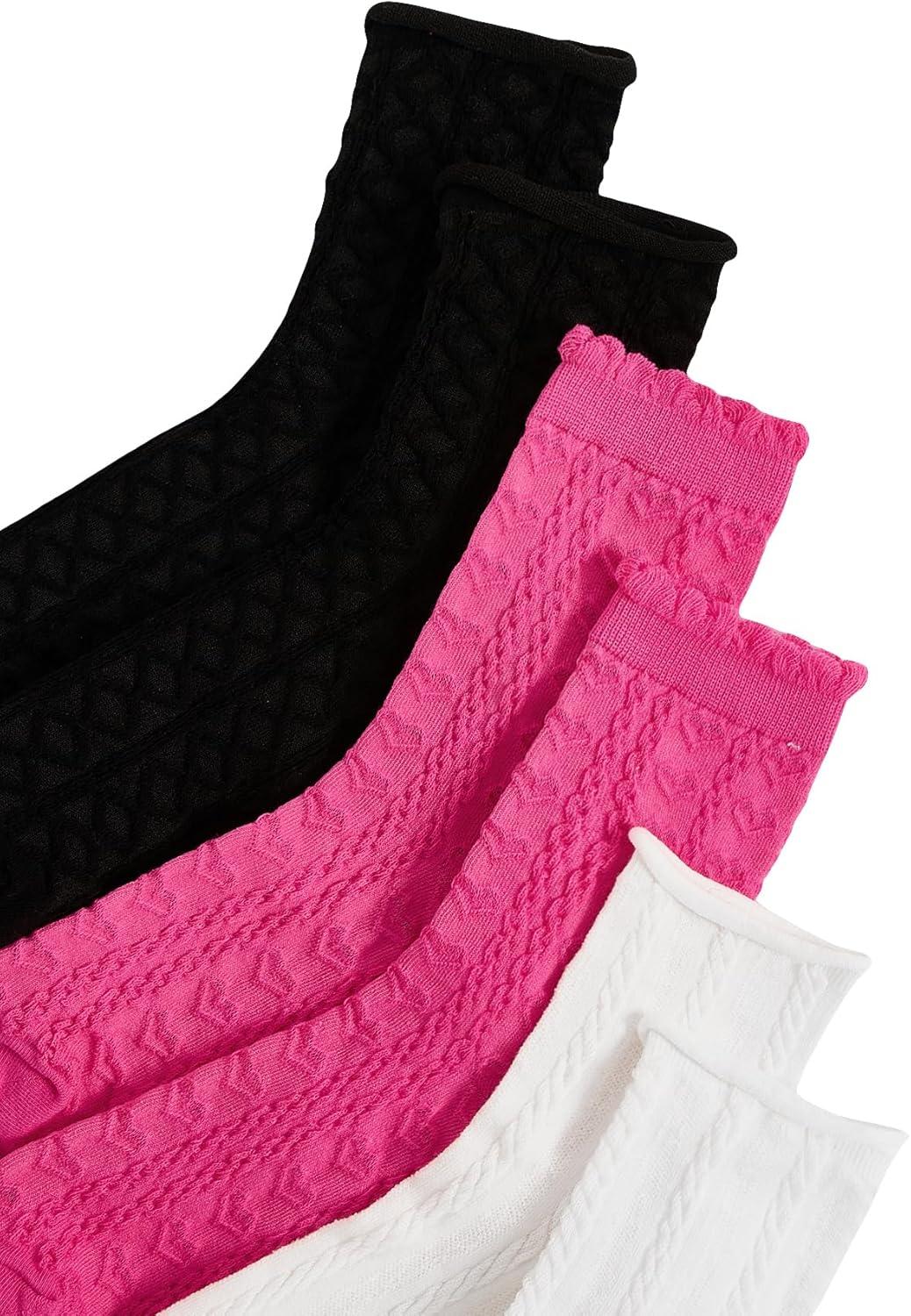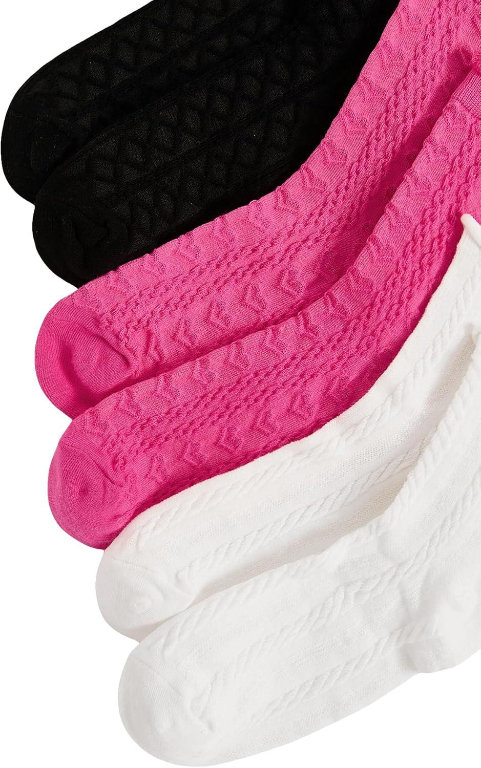 OYOANGLE Women’s 3 Pairs Cable Knit Casual Crew Socks Stretchy Solid Simple Socks(Pink White Black)