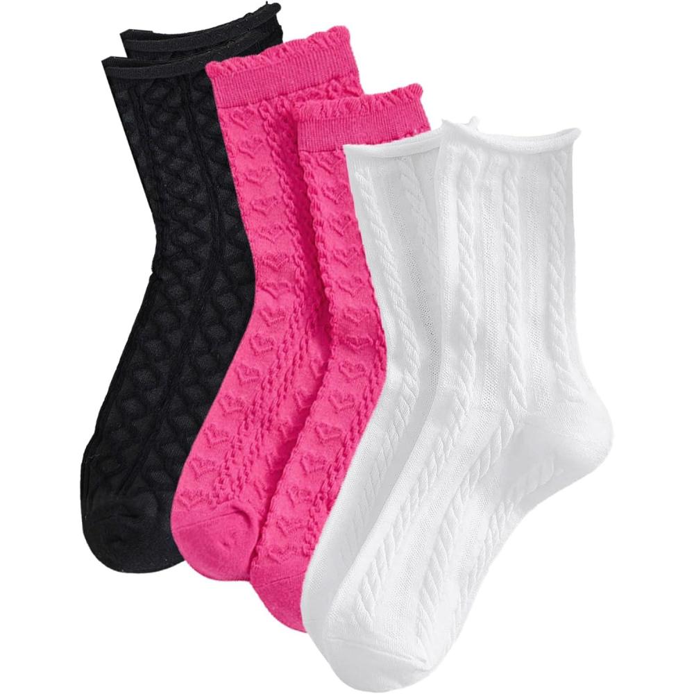 imageOYOANGLE Womens 3 Pairs Cable Knit Casual Crew Socks Stretchy Solid Simple SocksHot Pink White