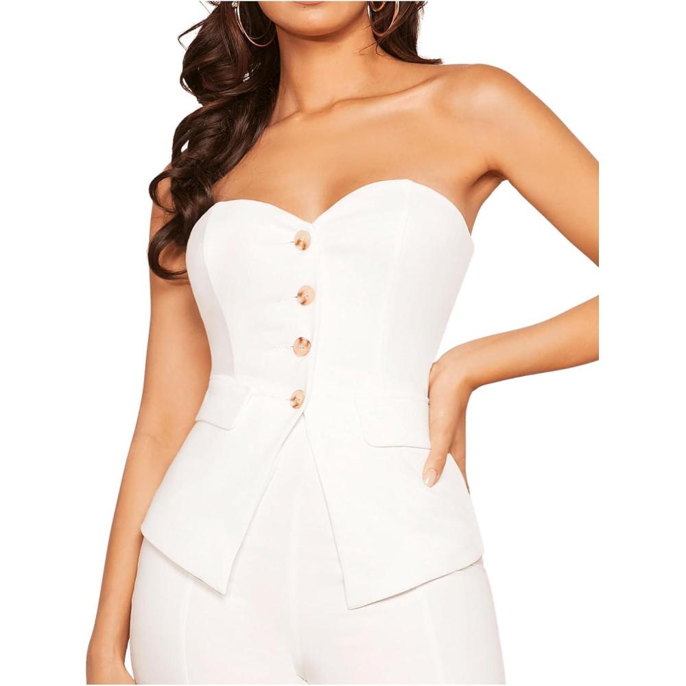 OYOANGLE Women's Button Front Split Hem Strapless Tube Top Elegant Workwear Tank Tops(White)