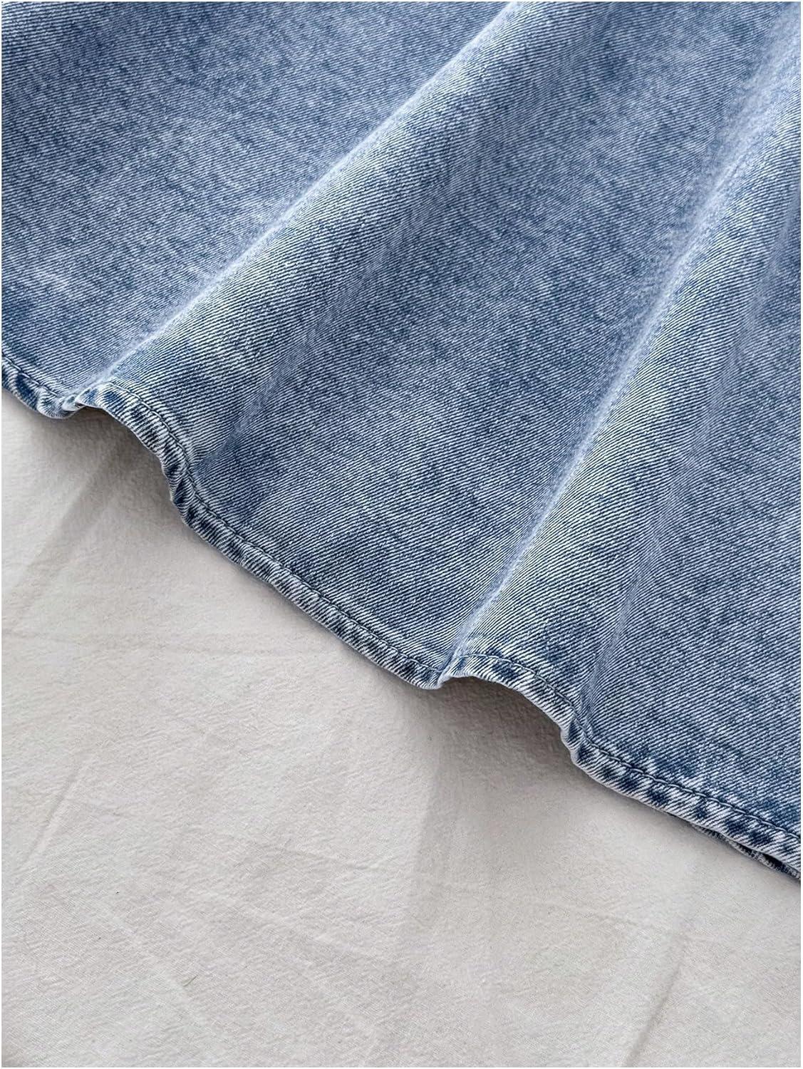 OYOANGLE Women's Cut Out A Line Denim Dress Spaghetti Strap V Neck Summer Short Jean Dresses(Light Wash)