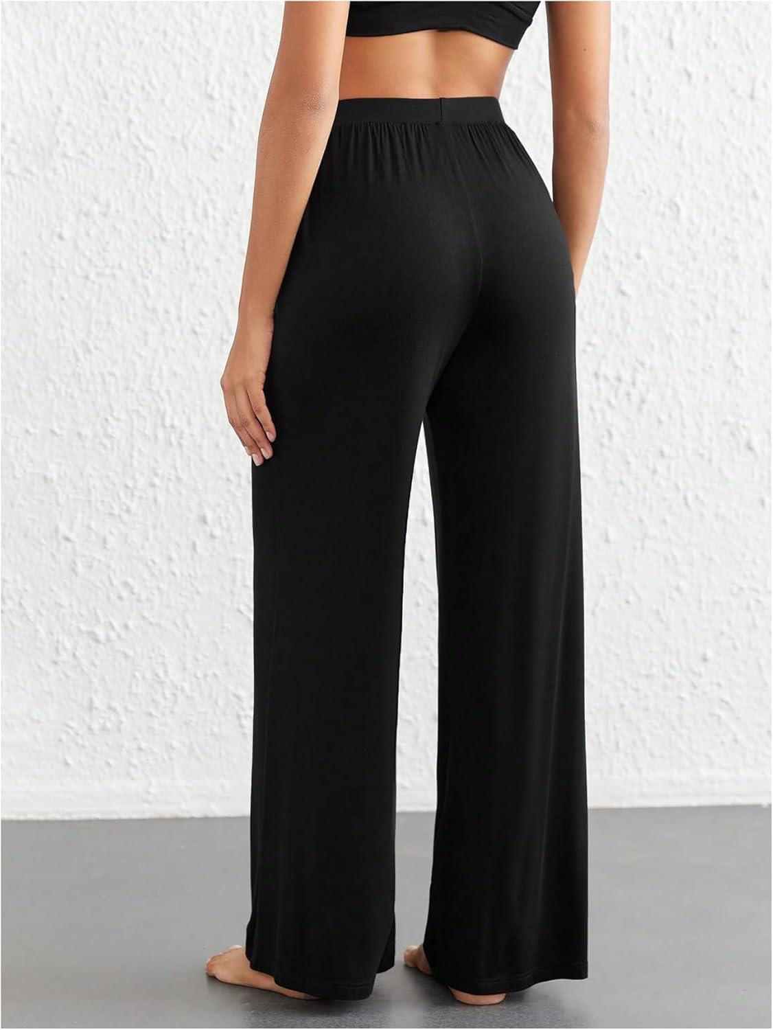 OYOANGLE Women's Elastic High Waist Wide Leg Pajama Pants Casual Comfy Lounge Sleep Bottoms(Black)
