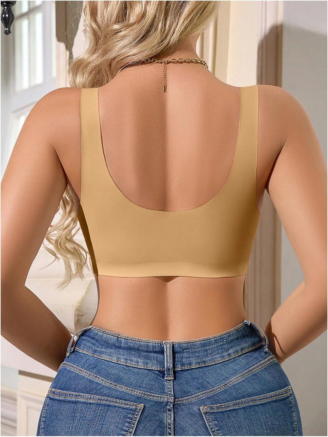 Be the first to review “OYOANGLE Women’s Front Closure Scalloped Wireless Bra Lightly Lined Medium Support Seamless Bras(Apricot)”