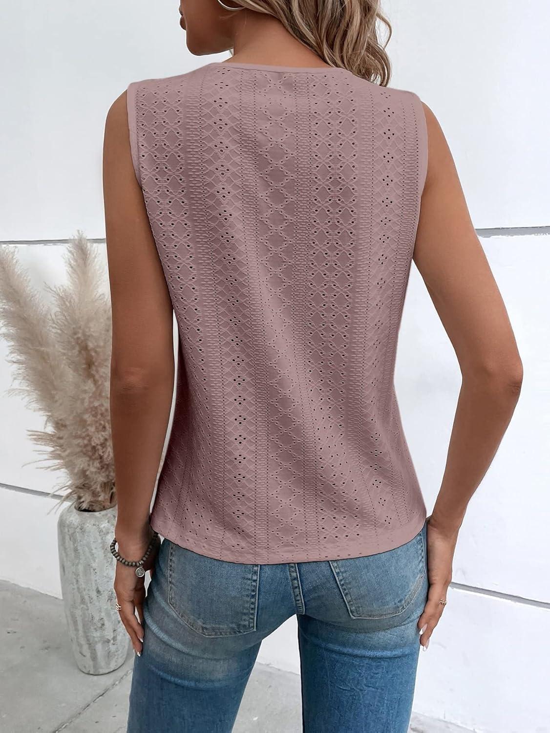 OYOANGLE Women’s Guipure Lace V Neck Vest Tank Top Sleeveless Workwear Office Blouse(Pink)