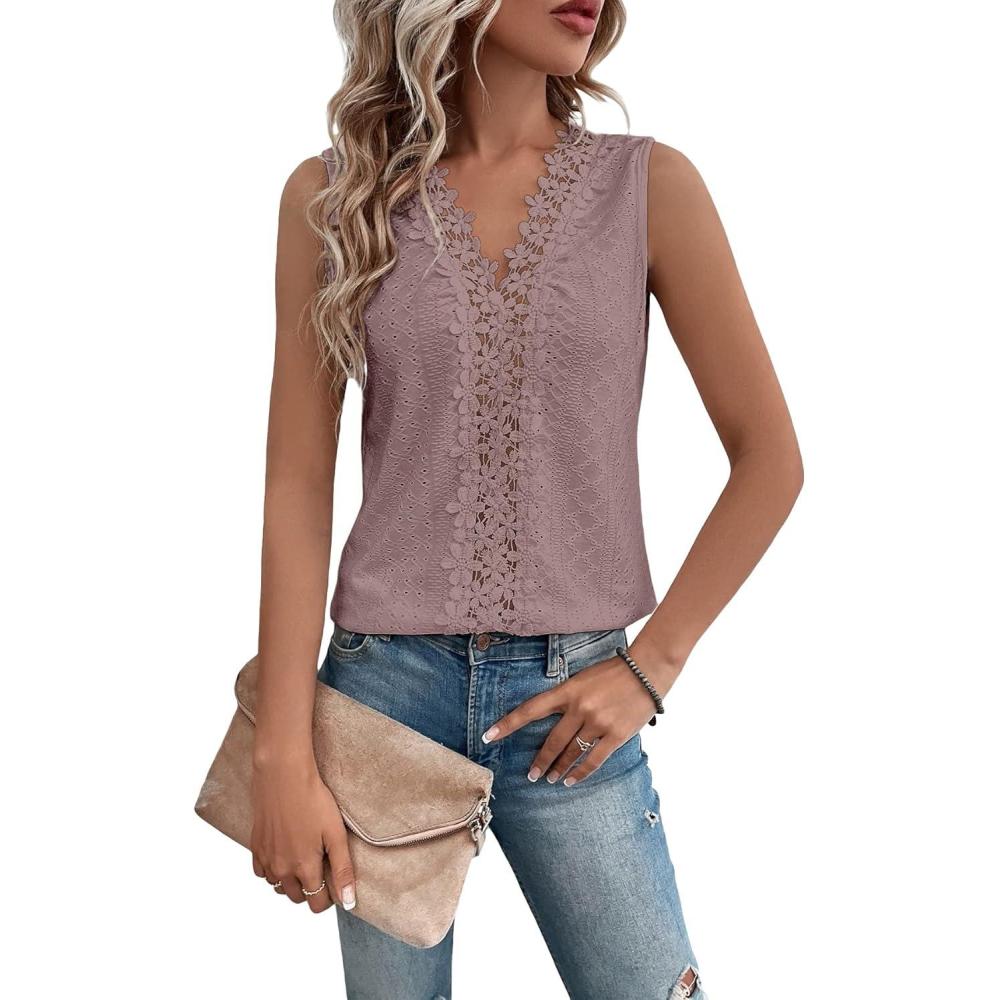 imageOYOANGLE Womens Guipure Lace V Neck Vest Tank Top Sleeveless Workwear Office BlouseMauve Purple