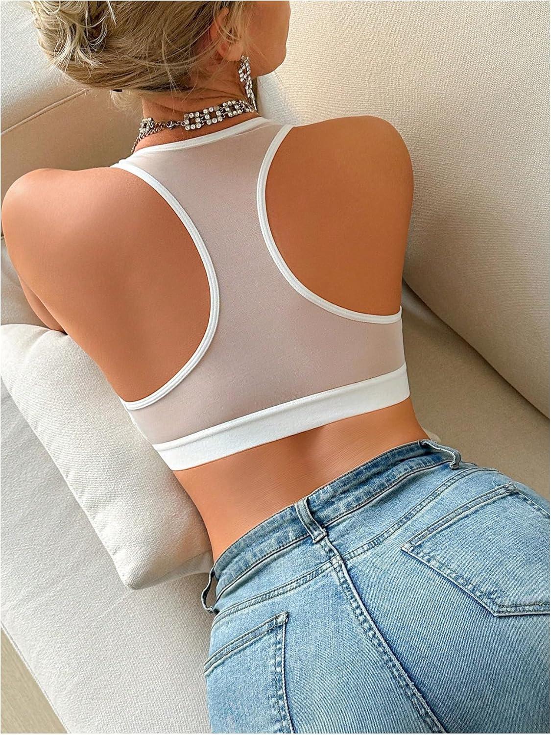 OYOANGLE Women’s Heart Print Mesh Front Closure Wireless Bra Comfortable No Underwired Racerback Bras(White)