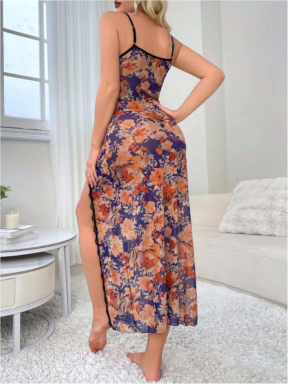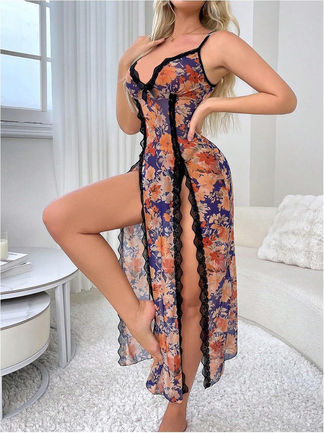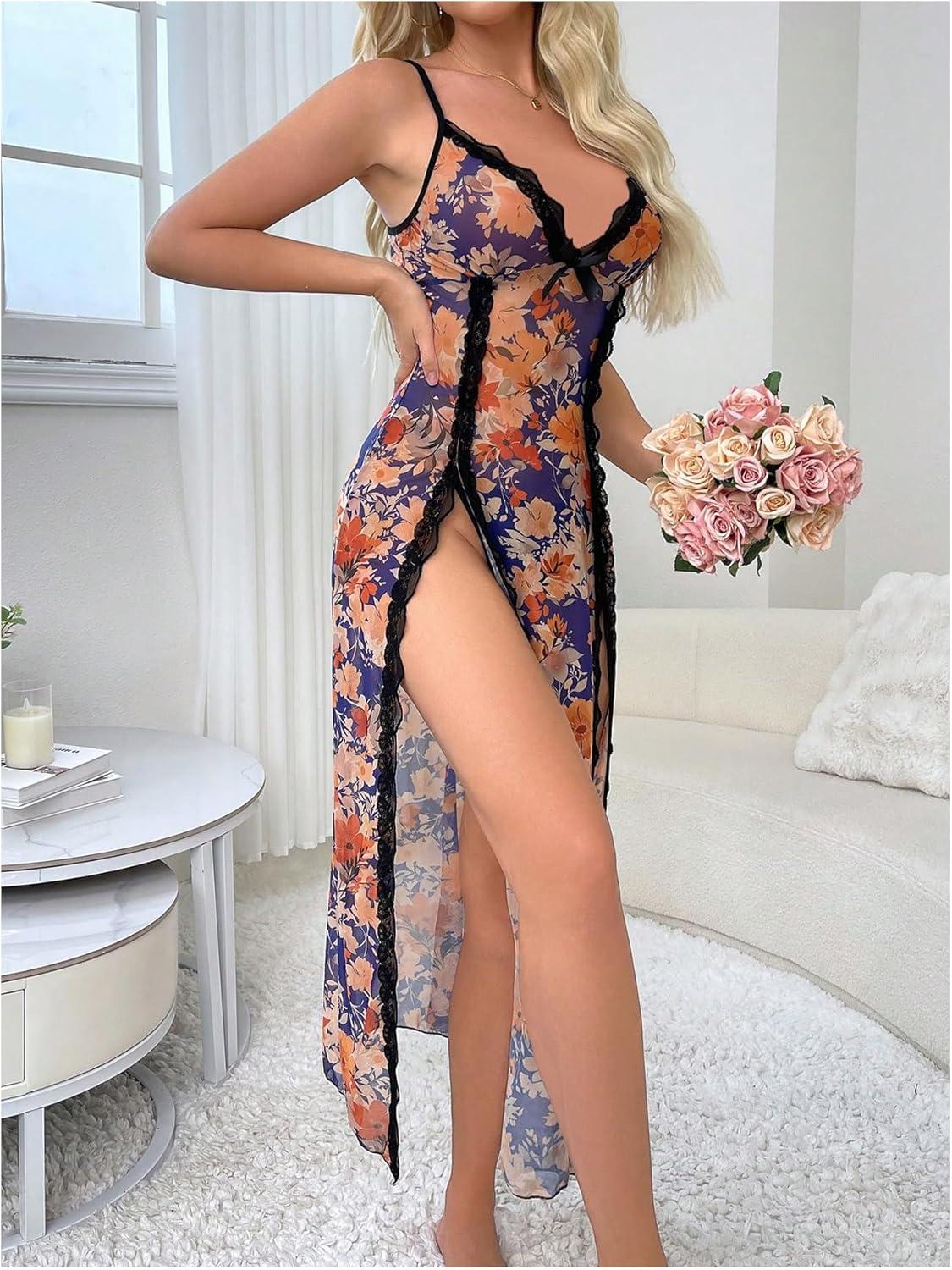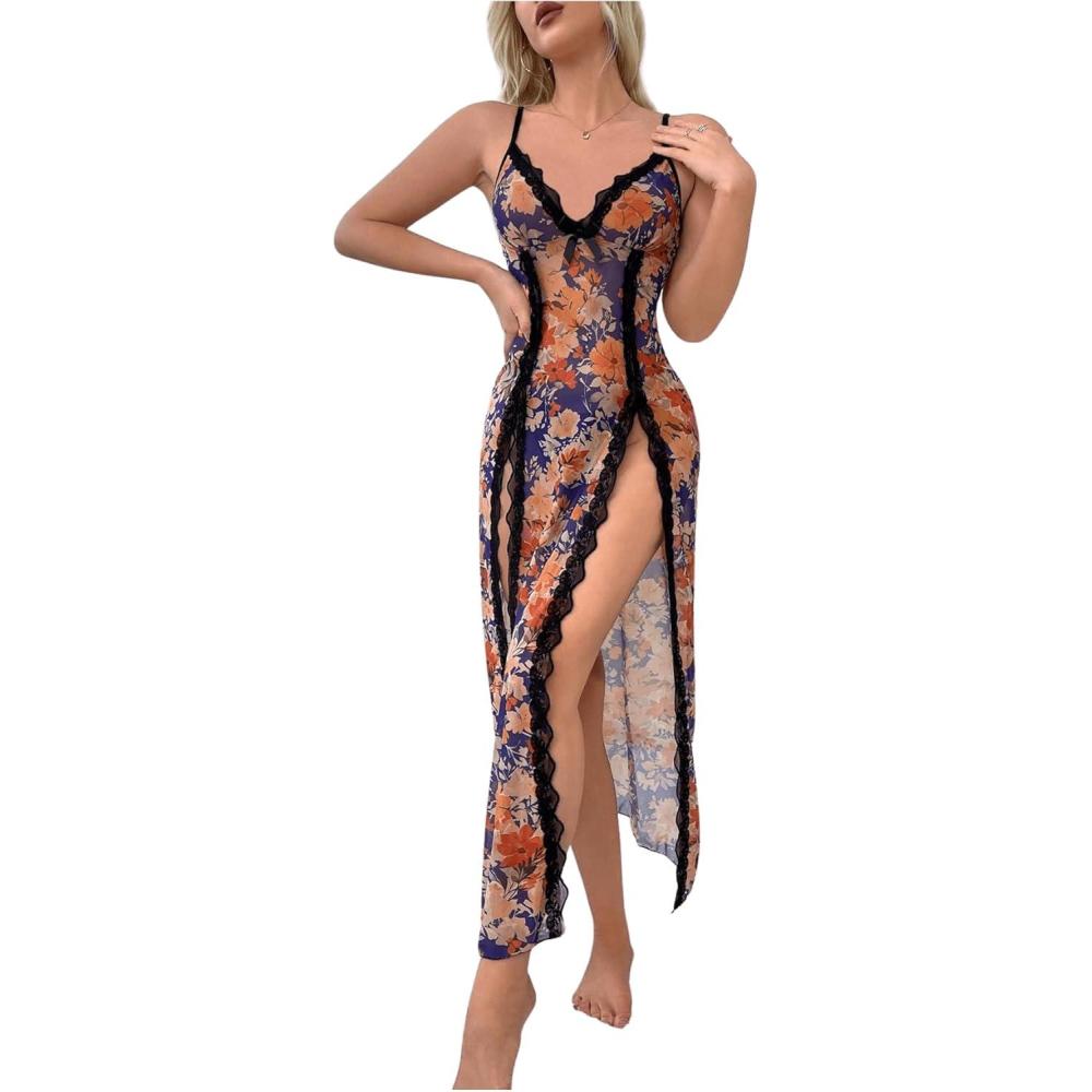 imageOYOANGLE Womens Lace V Neck Nightgown Babydoll Lingerie Dress Sexy Sleepwear Slip Chemise NightwearRoyal Blue