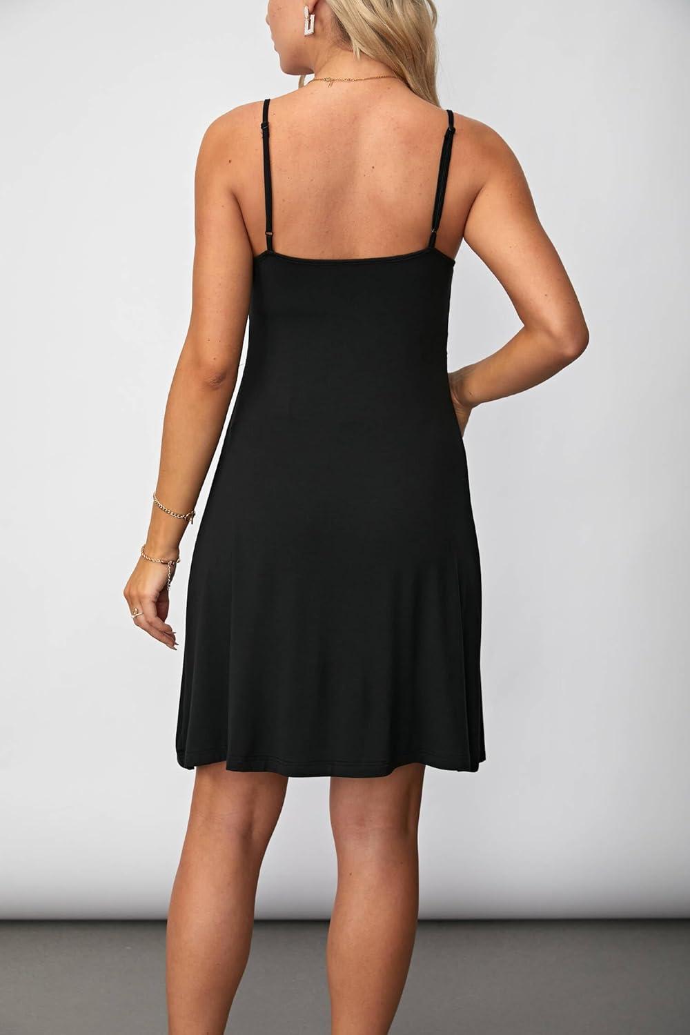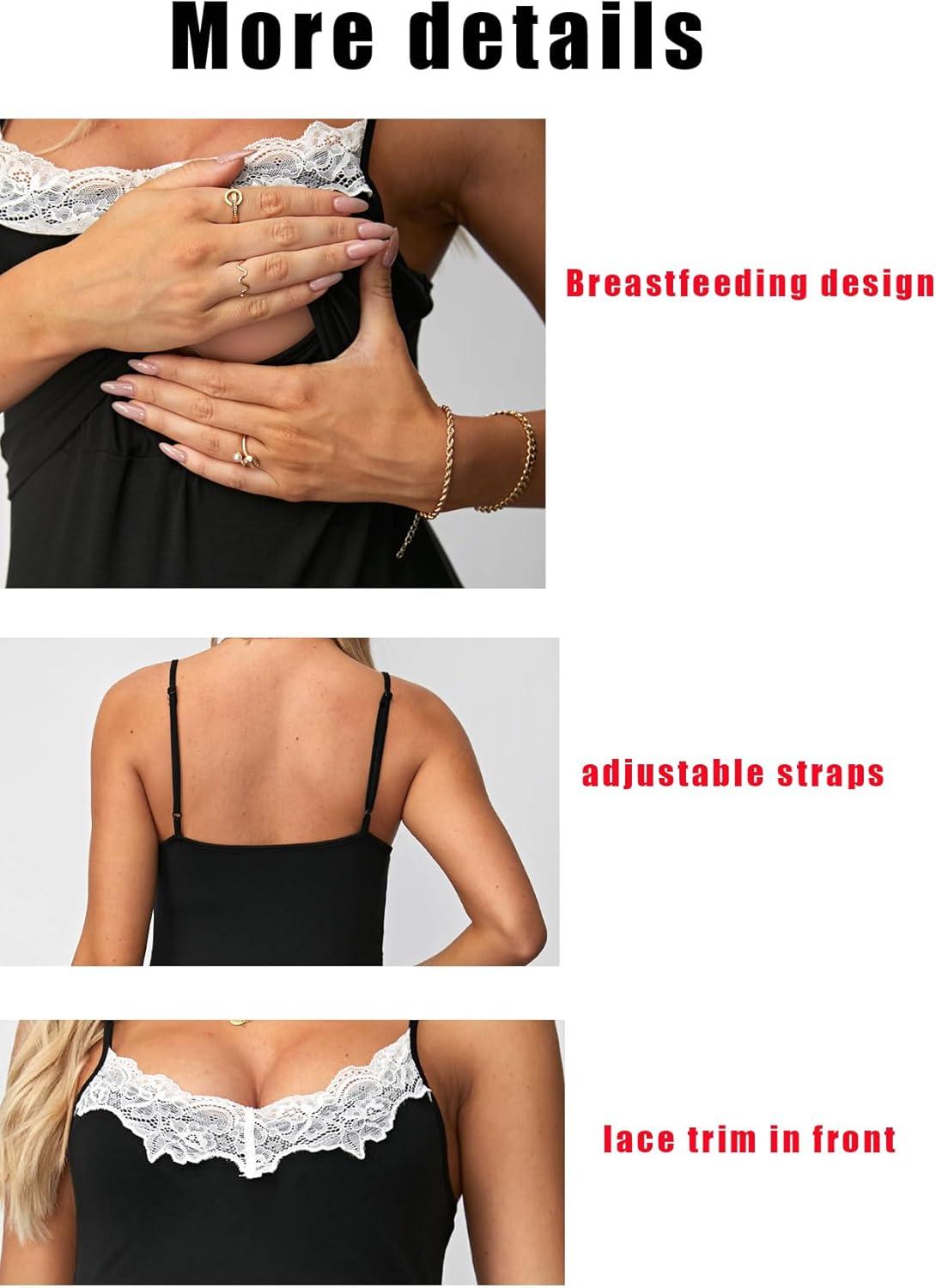 imageOYOANGLE Womens Maternity Nursing Nightgowns Lace Trim Spaghetti Strap Pajama Dress SleepwearBlack