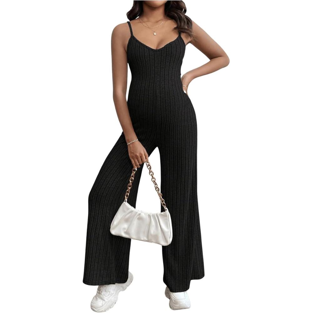 Be the first to review “OYOANGLE Women’s Maternity V Neck Spaghetti Strap Ribbed Knit Long Pants Jumpsuits(Black)”