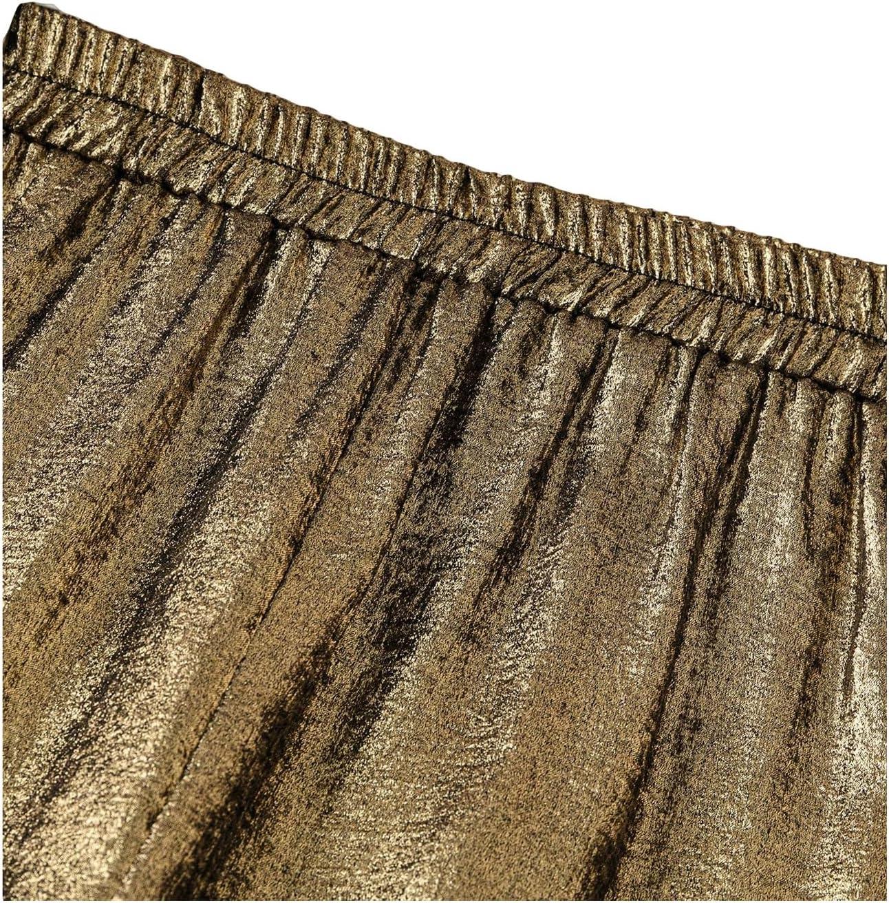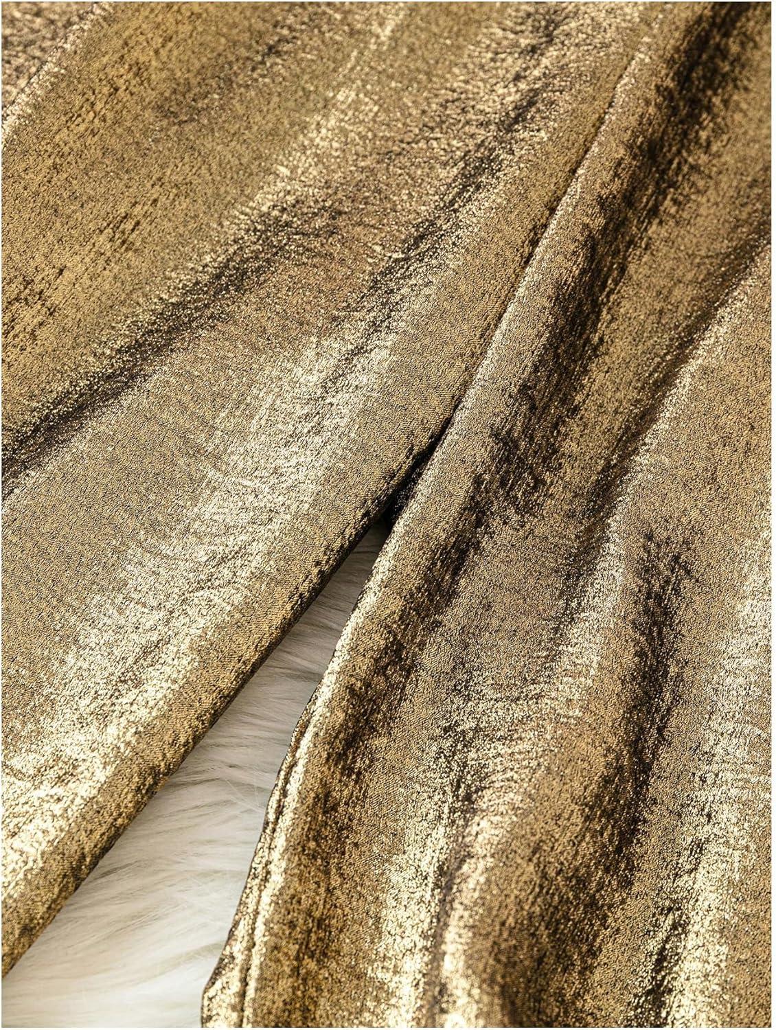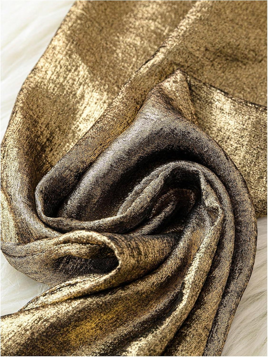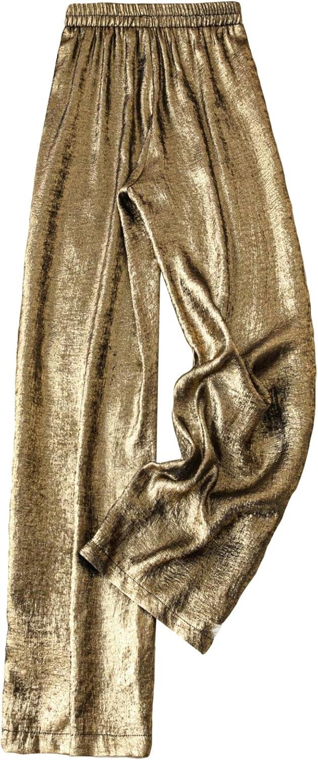 OYOANGLE Women’s Metallic High Elastic Waist Straight Leg Pants Casual Party Nightout Clubwear Long Pants(Bronze)