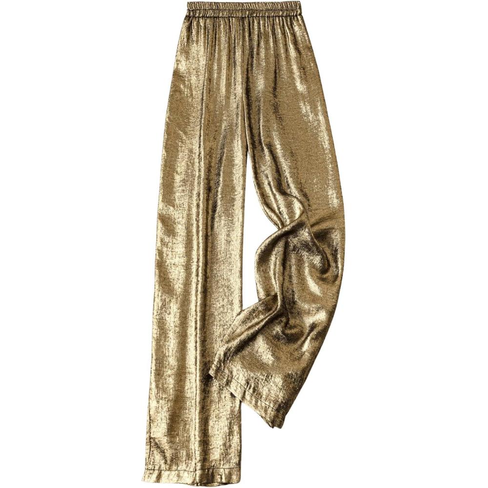 imageOYOANGLE Womens Metallic High Elastic Waist Straight Leg Pants Casual Party Nightout Clubwear Long PantsBronze