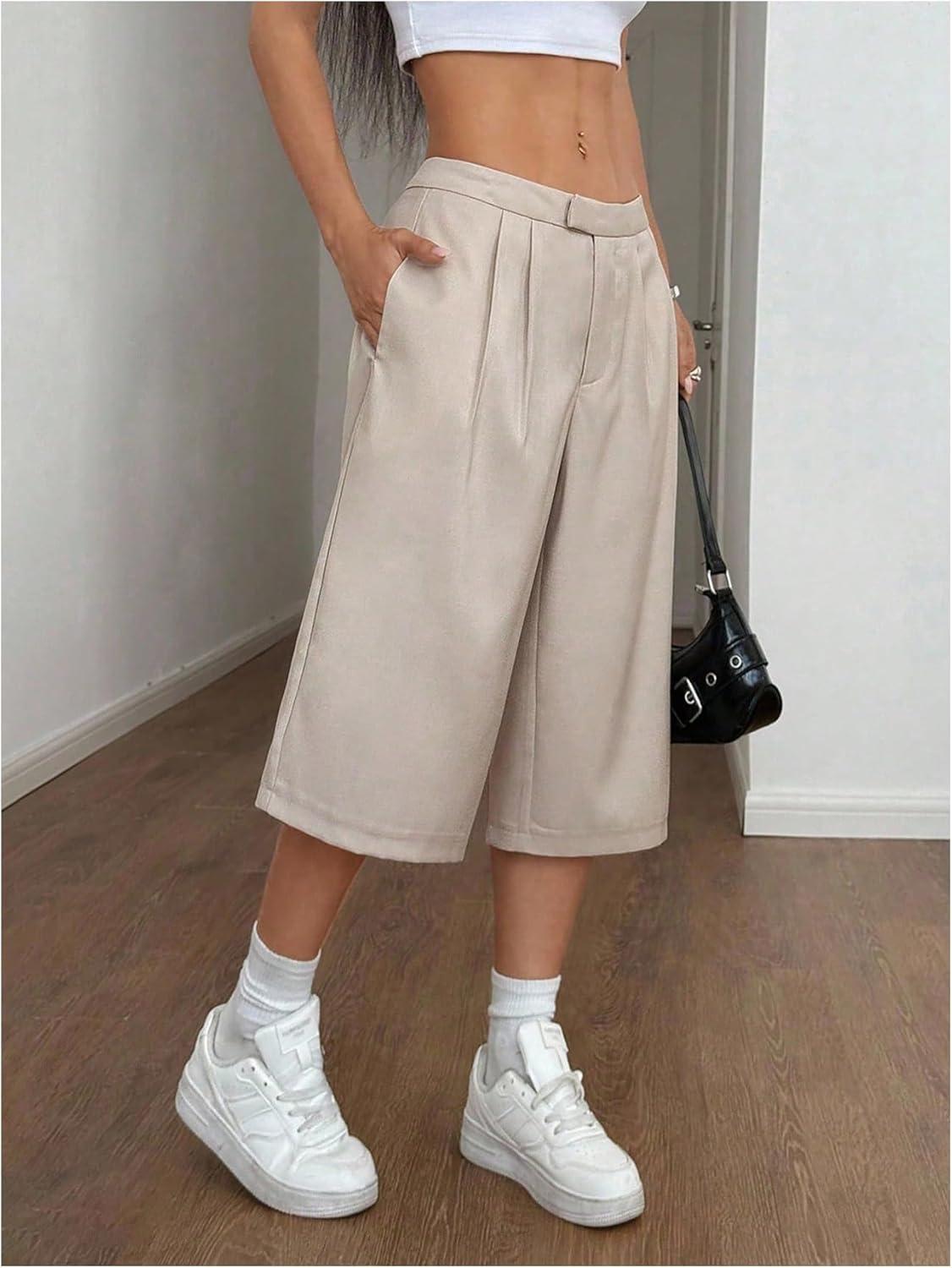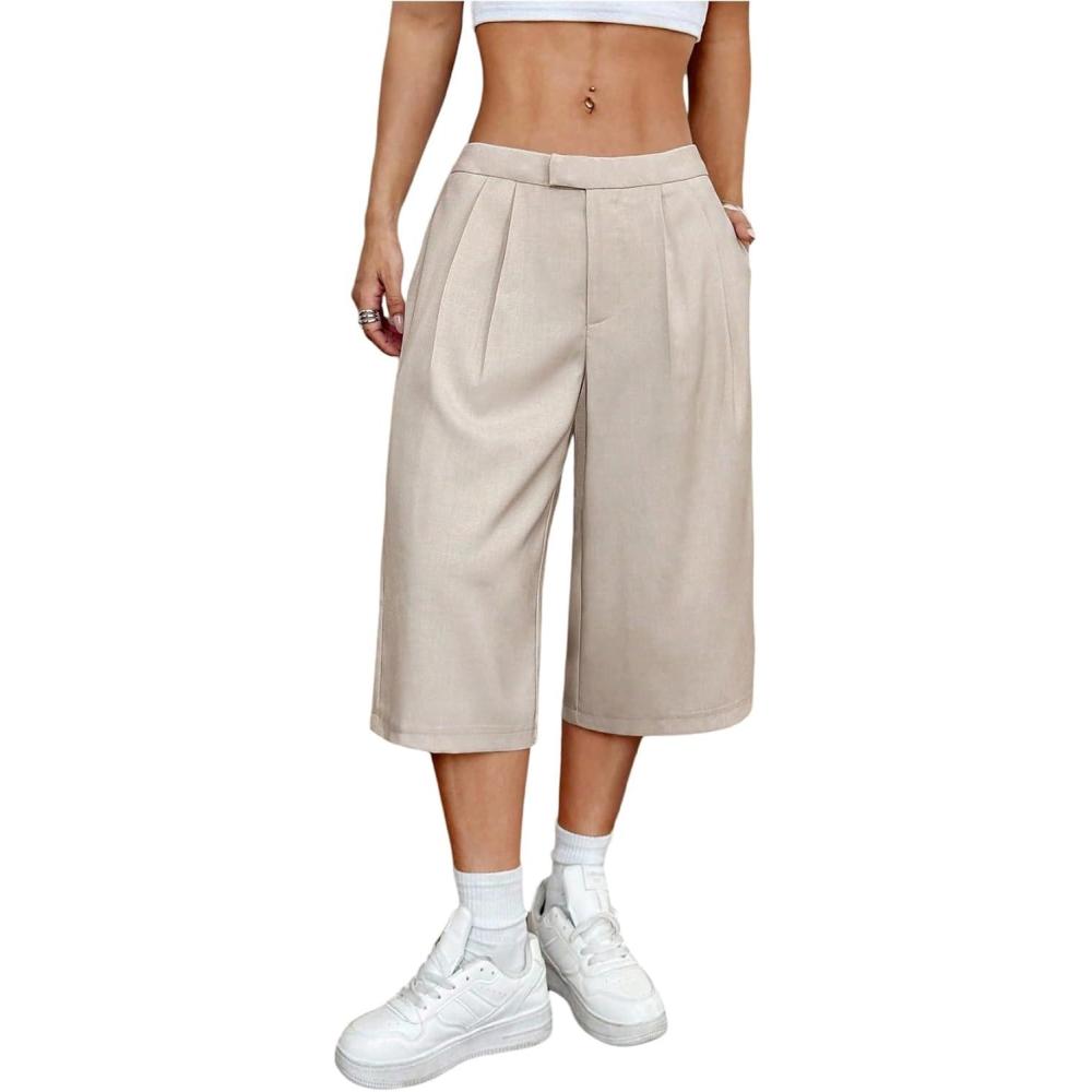 Be the first to review “OYOANGLE Women’s Pleated Bermuda Shorts Low Waisted Loose Wide Leg Dressy Shorts with Pocket(Apricot)”