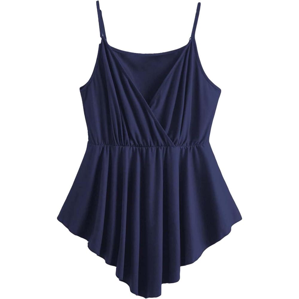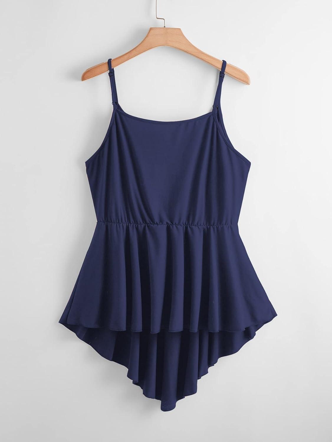 Be the first to review “OYOANGLE Women’s Plus Size Casual Sleeveless Cami Tank Tops Deep V Neck High Low Hem Babydoll Camisole(Navy Blue)”