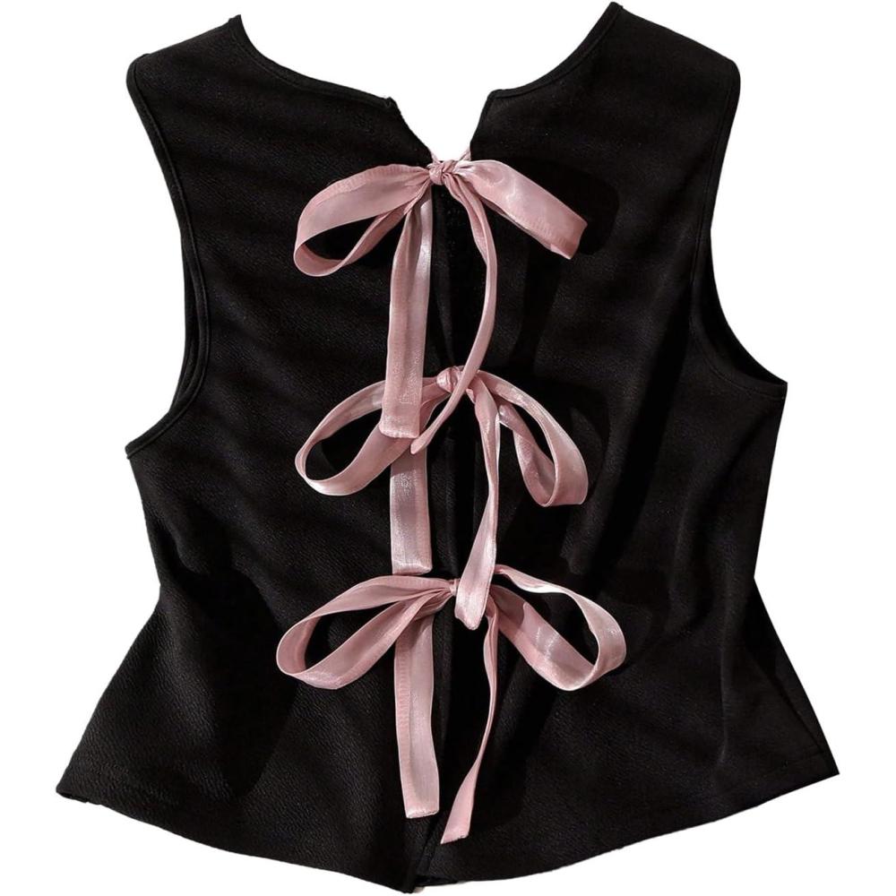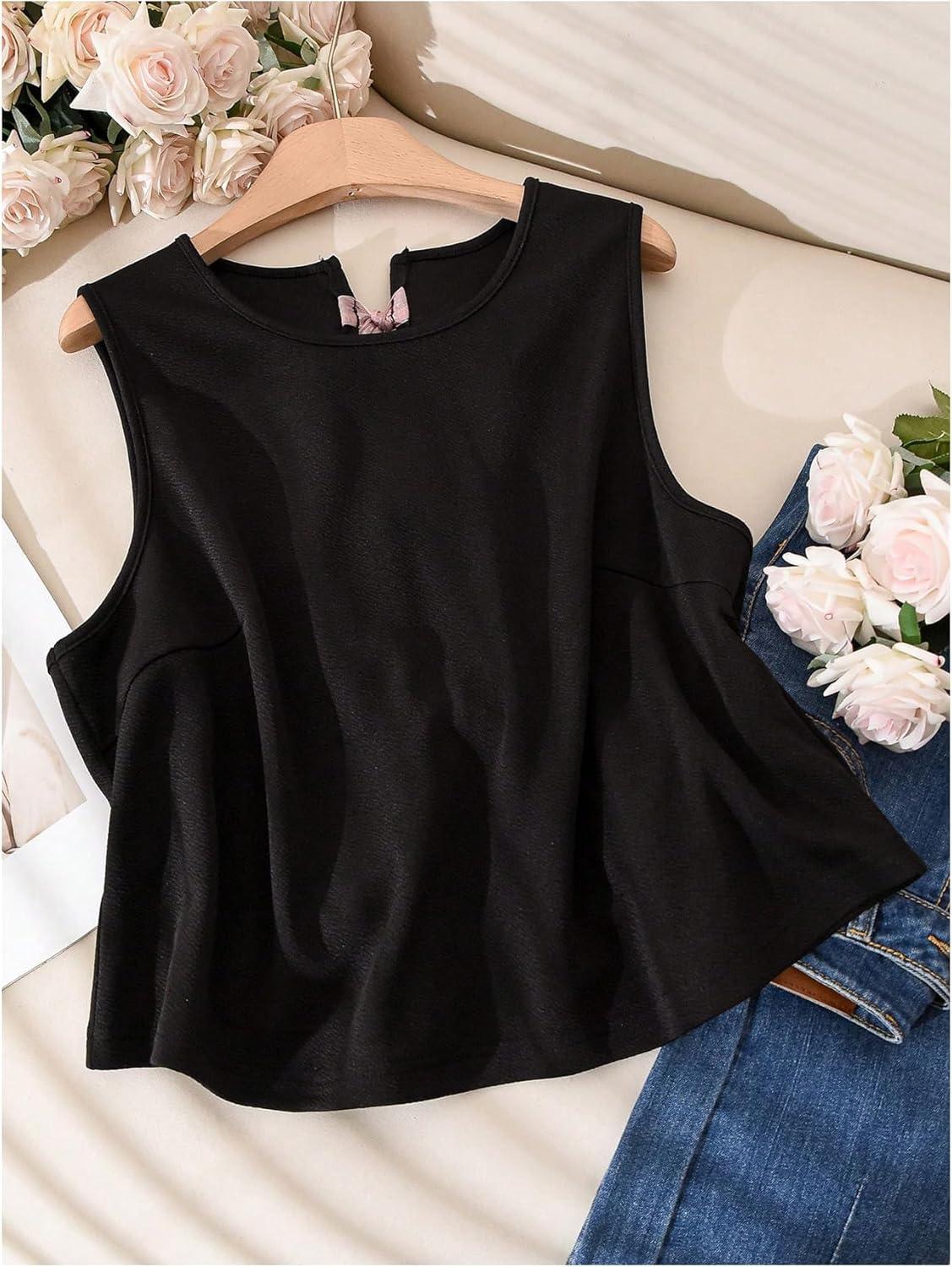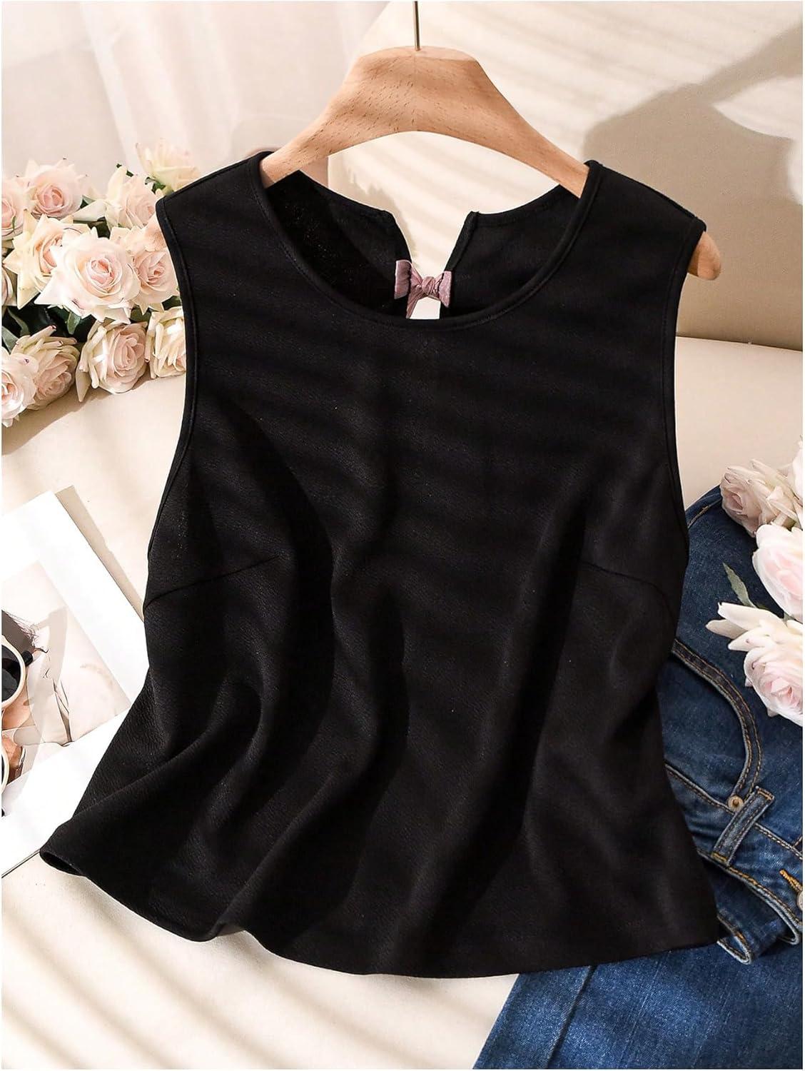OYOANGLE Women’s Plus Size Cute Bow Tie Tank Top Crew Neck Sleeveless Dressy Tops(Black)
