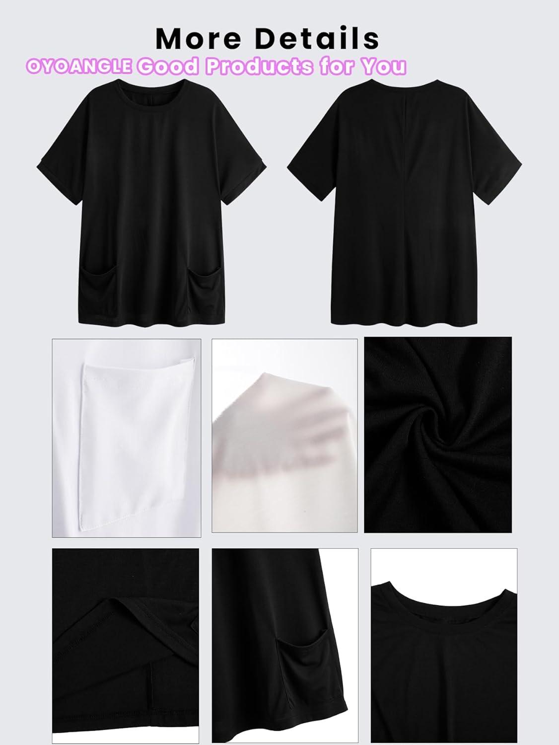 OYOANGLE Women’s Plus Size Short Sleeve Round Neck Pocket Tee Shirt Basic Solid Loose Tunic Tops(White)