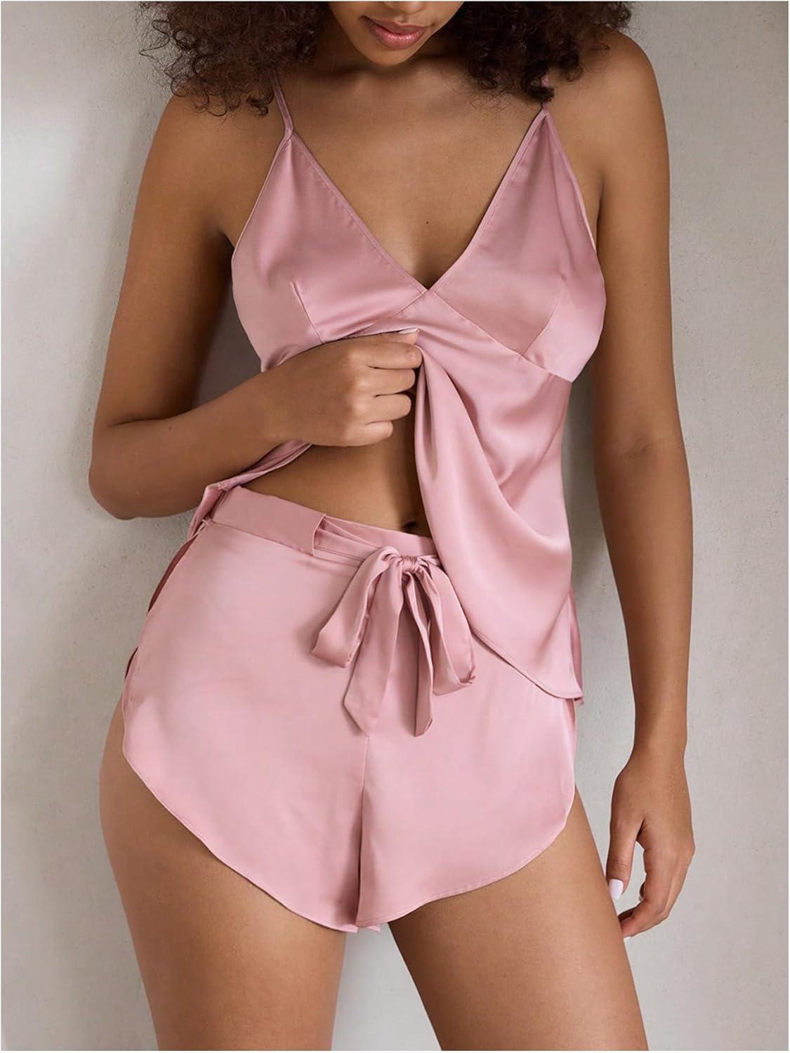 Be the first to review “OYOANGLE Women’s Satin Pajama Shorts Side Slit Elastic Waist Tie Front Sleep Shorts Nightwear(Pink)”