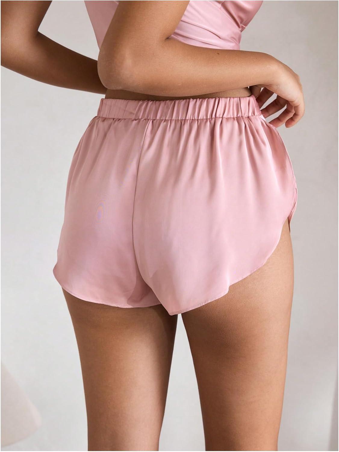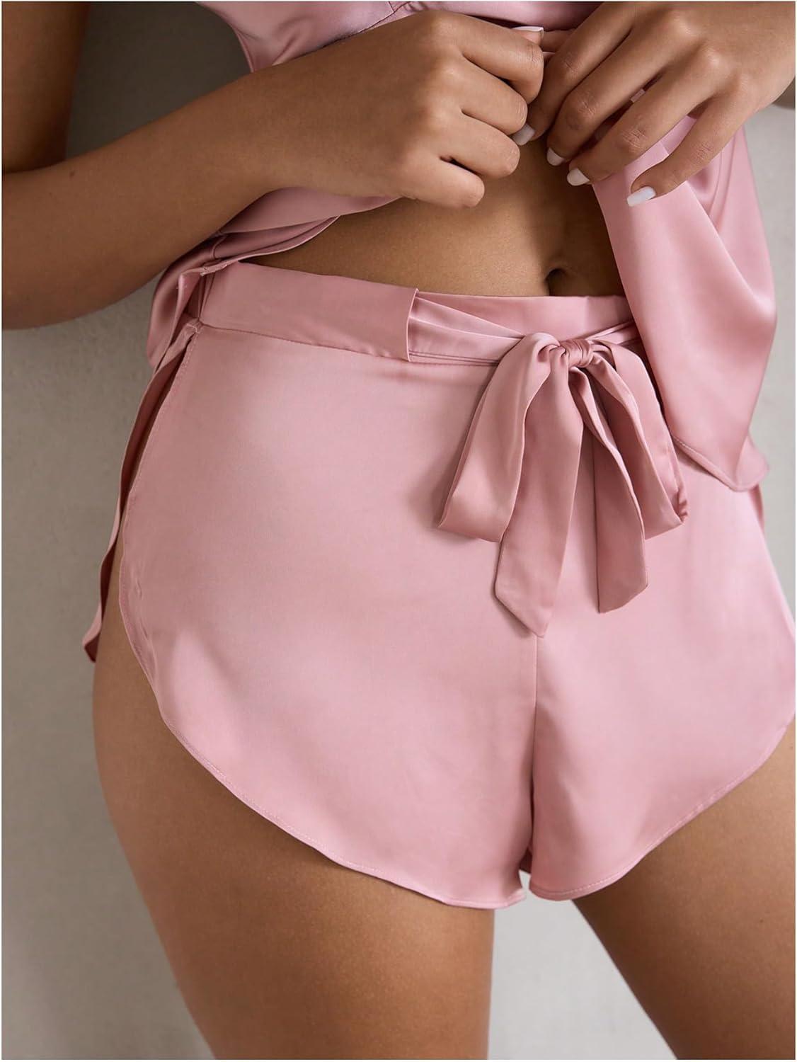 OYOANGLE Women’s Satin Pajama Shorts Side Slit Elastic Waist Tie Front Sleep Shorts Nightwear(Pink)