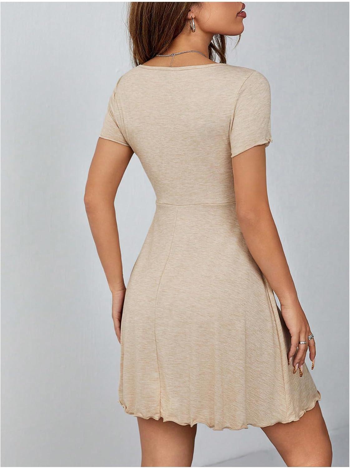 Be the first to review “OYOANGLE Women’s Short Sleeve Drawstring Front Ruched Short Dress V Neck A Line Tshirt Dresses(Apricot)”