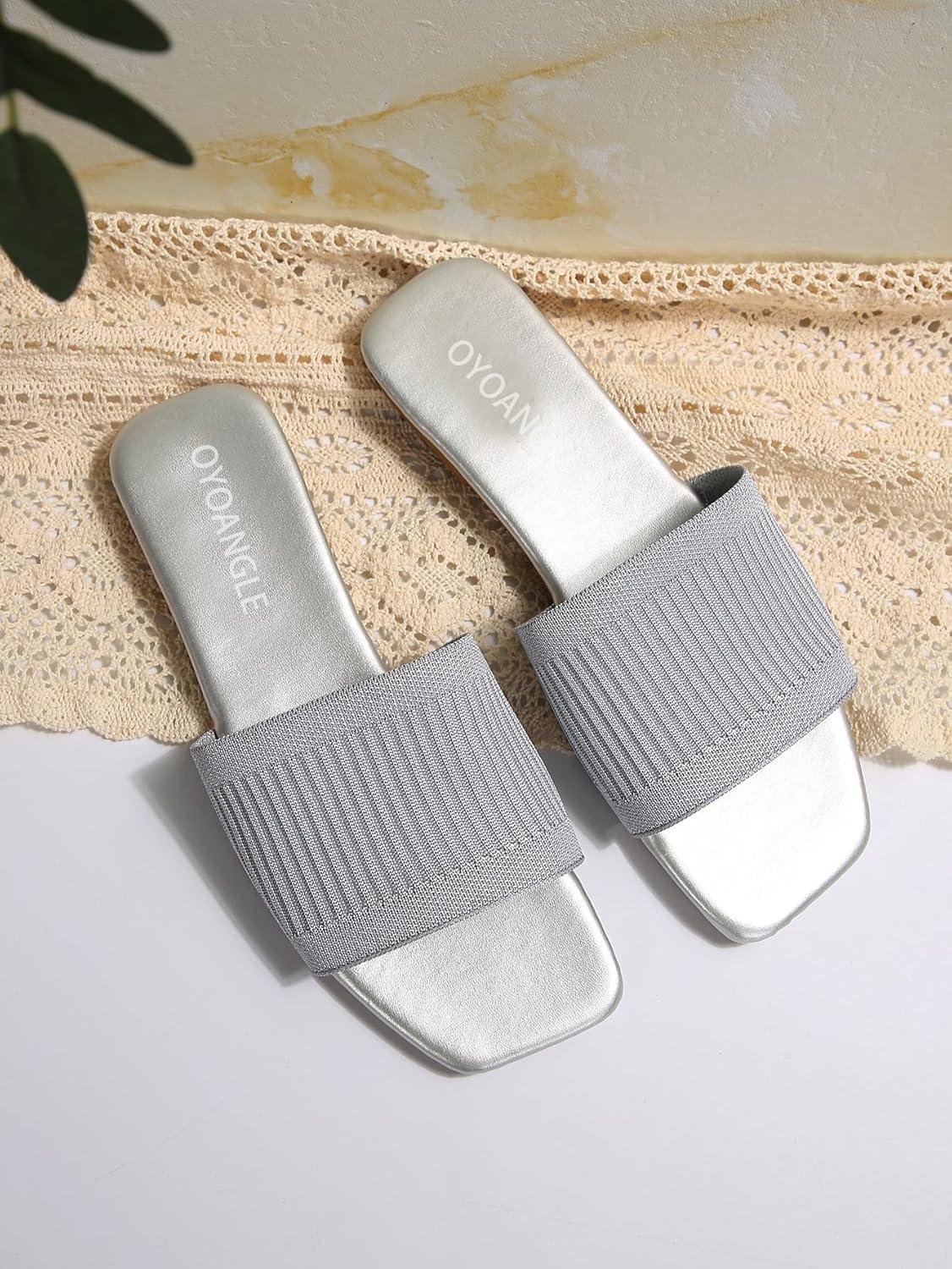 Be the first to review “OYOANGLE Women’s Single Band Square Open Toe Slide Sandals Summer Slip on Flat Sandals(Silver)”