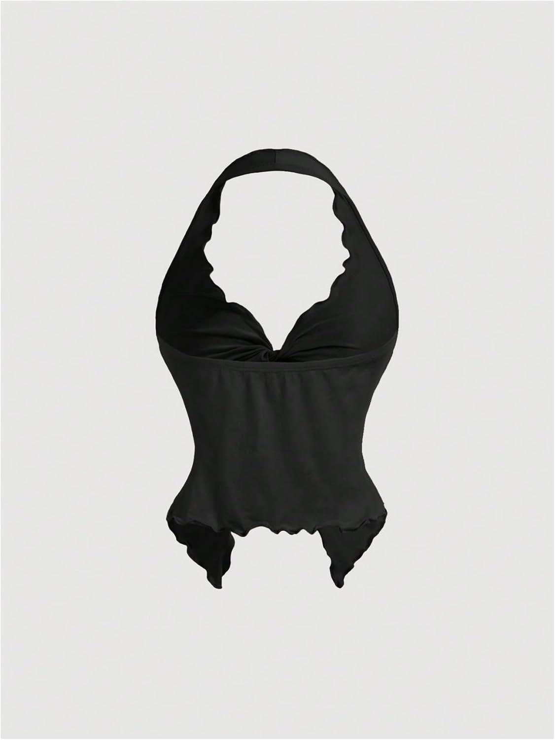imageOYOANGLE Womens Twist Front Ruched Halter Crop Top Sleeveless Y2K Going Out Top ClubBlack