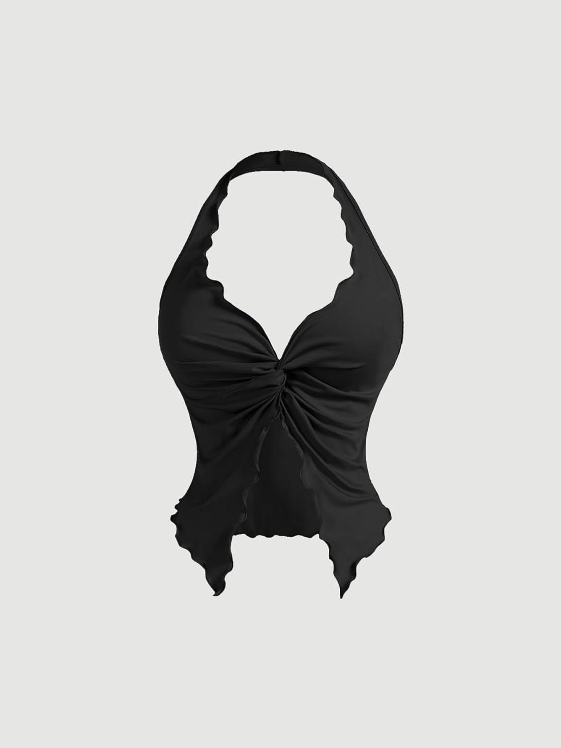 OYOANGLE Women’s Twist Front Ruched Halter Crop Top Sleeveless Y2K Going Out Top Club(Black)