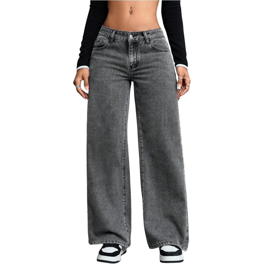 Be the first to review “OYOANGLE Women’s Zipper Fly Wide Leg Jeans Y2k Baggy Casual Denim Pants with Pockets(Grey)”